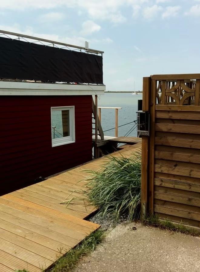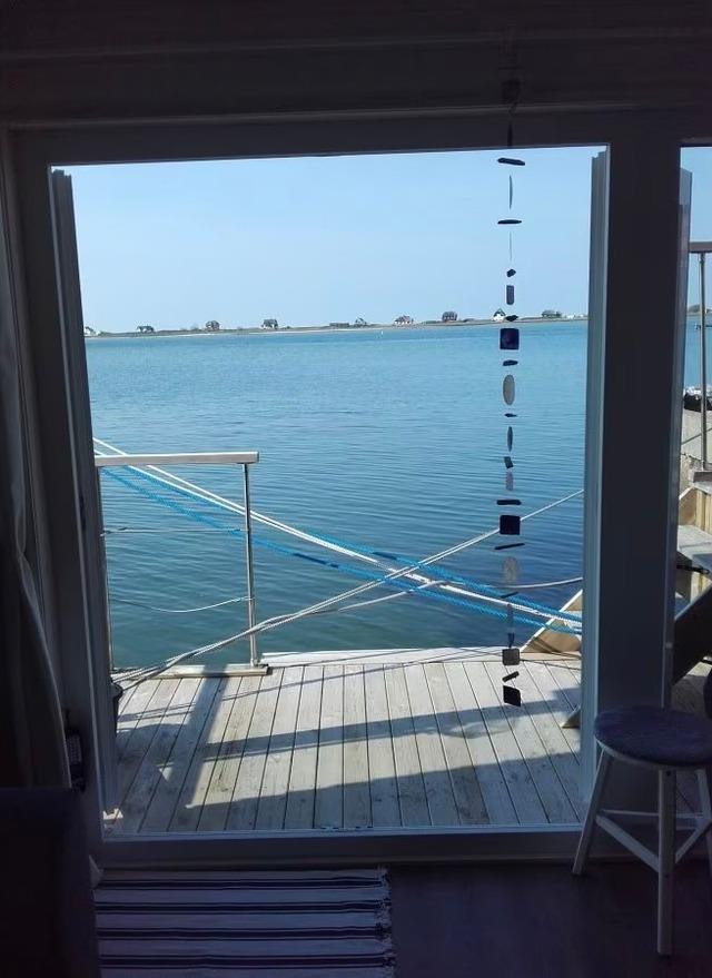 Erleben Sie romantischen Komfort auf dem Hausboot Sealodge II im Yachthafen Ortmühle mit direktem Meerblick und Strandnähe.
