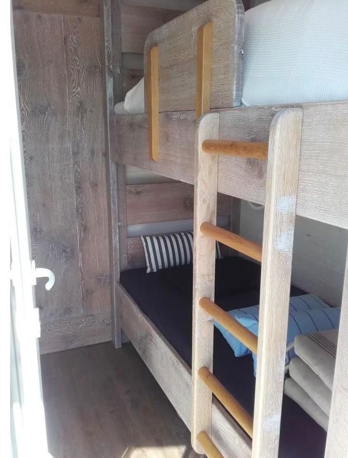 Das Boot bietet Schlafmöglichkeiten für 4-5 Personen. Es sind zwei Schlafzimmer und ein Wohn-/ Essbereich mit Schlafsofa und einer offenen, komplett eingerichtete Küche vorhanden. Unser Boot ist allergikerfreundlich ausgestattet.