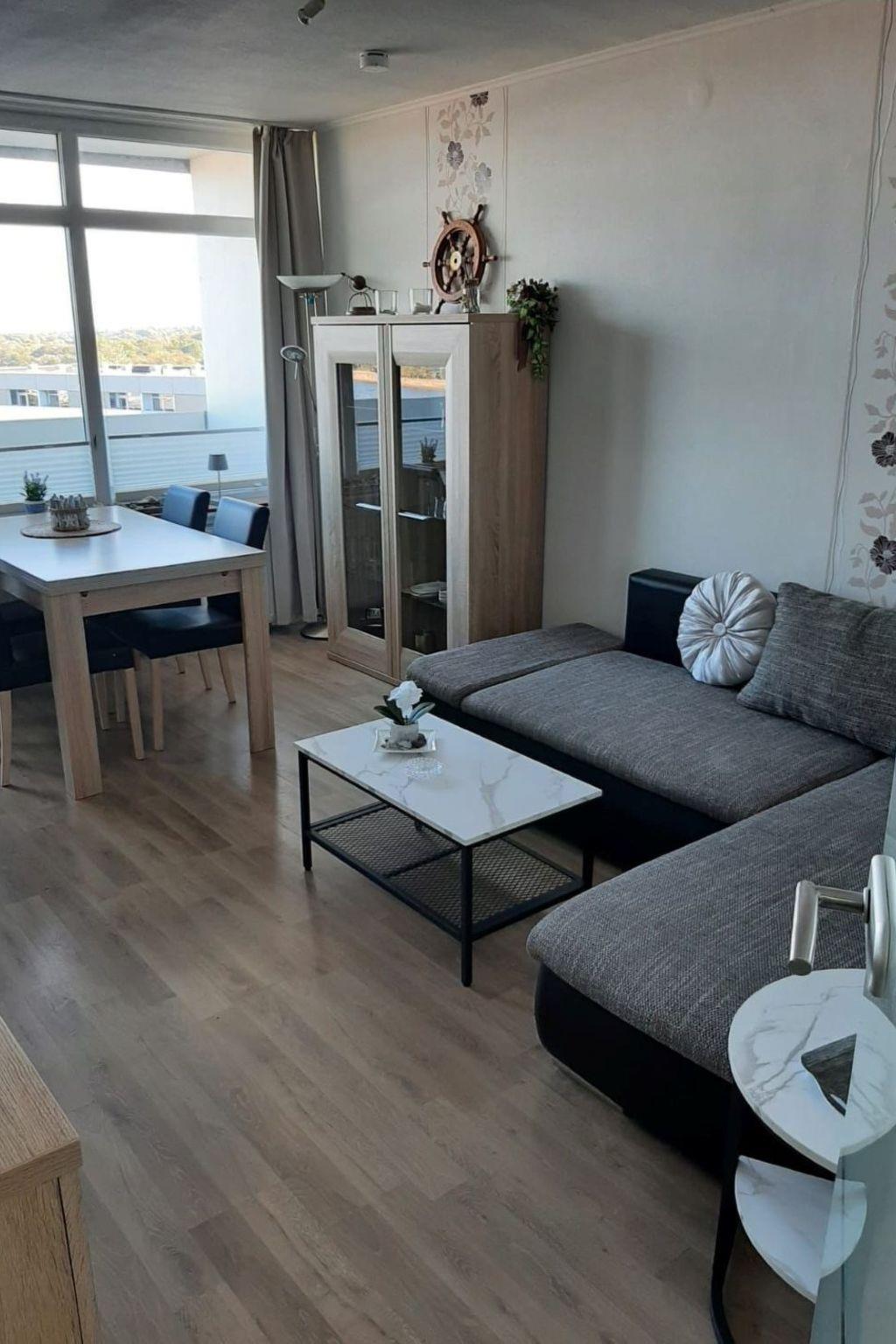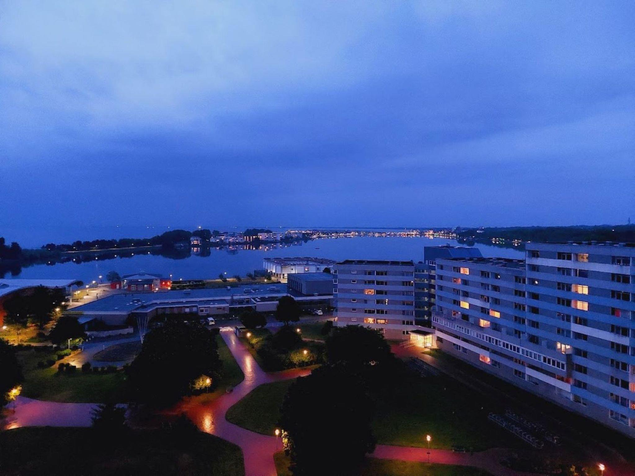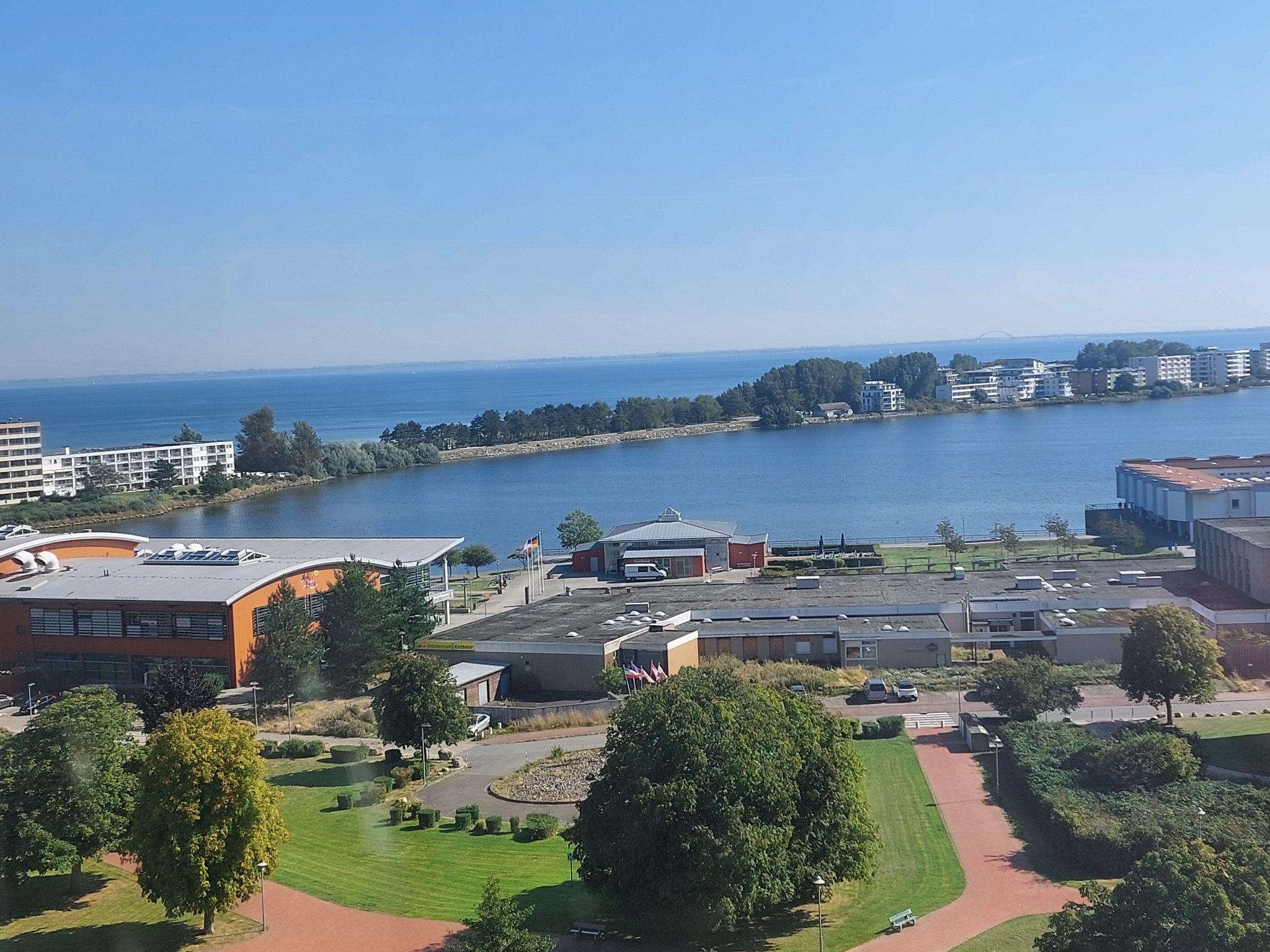 FeWo Sonnenaufgang: für 1-maximal 3 Personen, 45 qm im Ferienpark Heiligenhafen befindet sich im 11. Stockwerk mit Fahrstuhl, möblierten, überdachten Balkon zur Südostseite mit einem traumhaften Blick auf den Binnensee/Jachthafen und die Ostsee!!