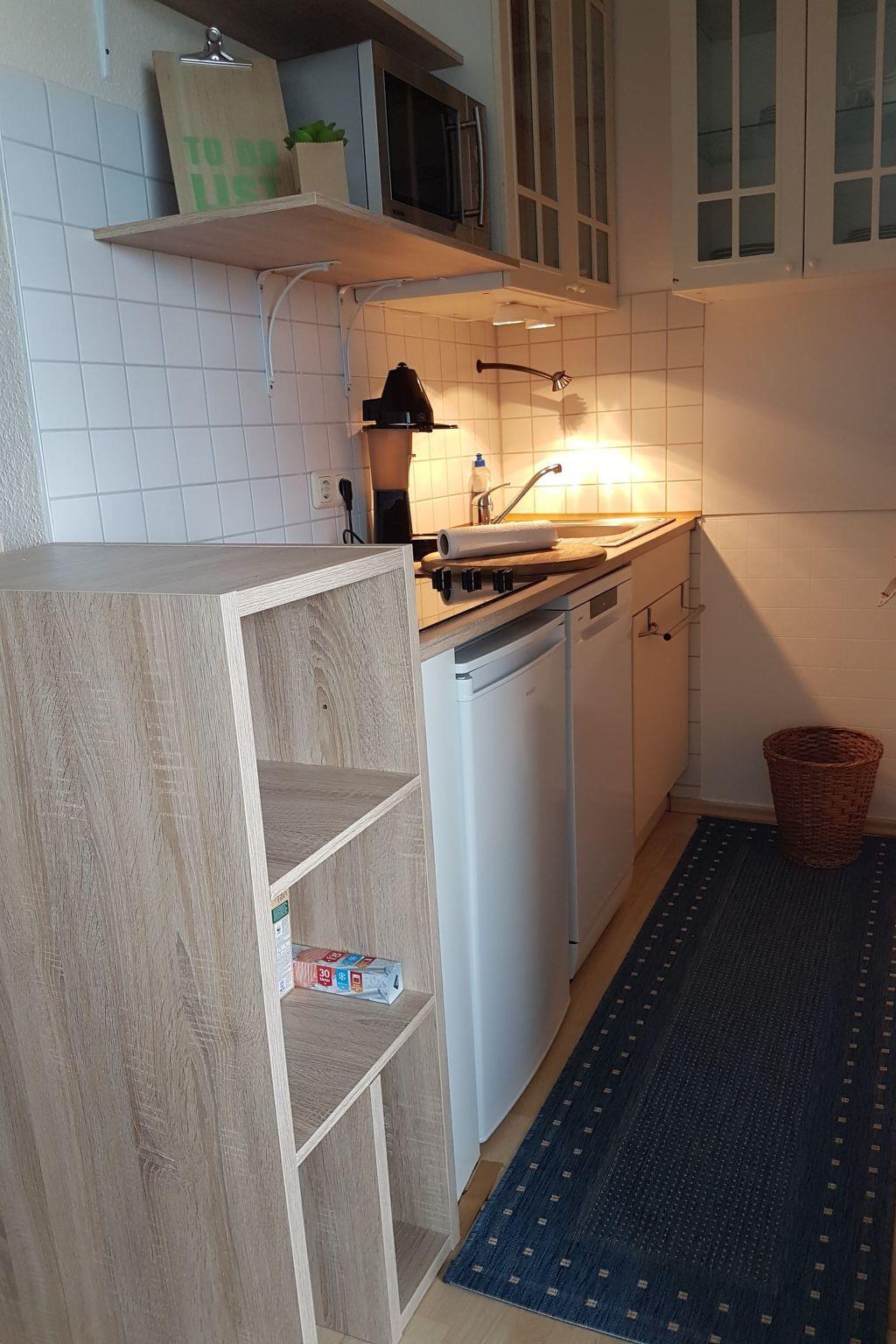 Die Wohnung verfügt über einen kombinierten Wohn- u. Schlafbereich mit offener Einbauküche. Neben Flur und Badezimmer gibt es weiterhin einen separates Schlafzimmer. Die Ausstattung des Appartements ist gehoben und bietet selbstverständlich WLAN.