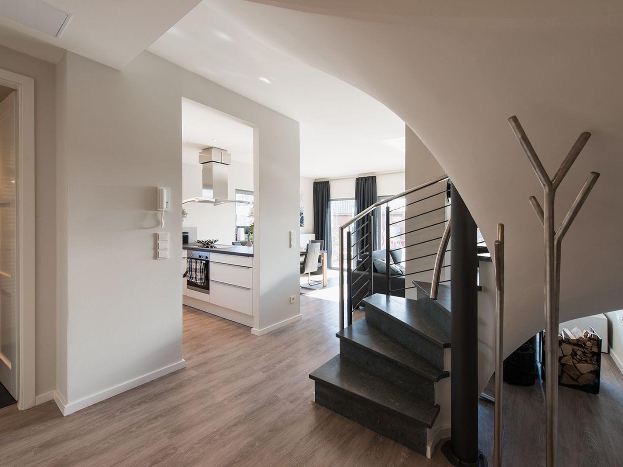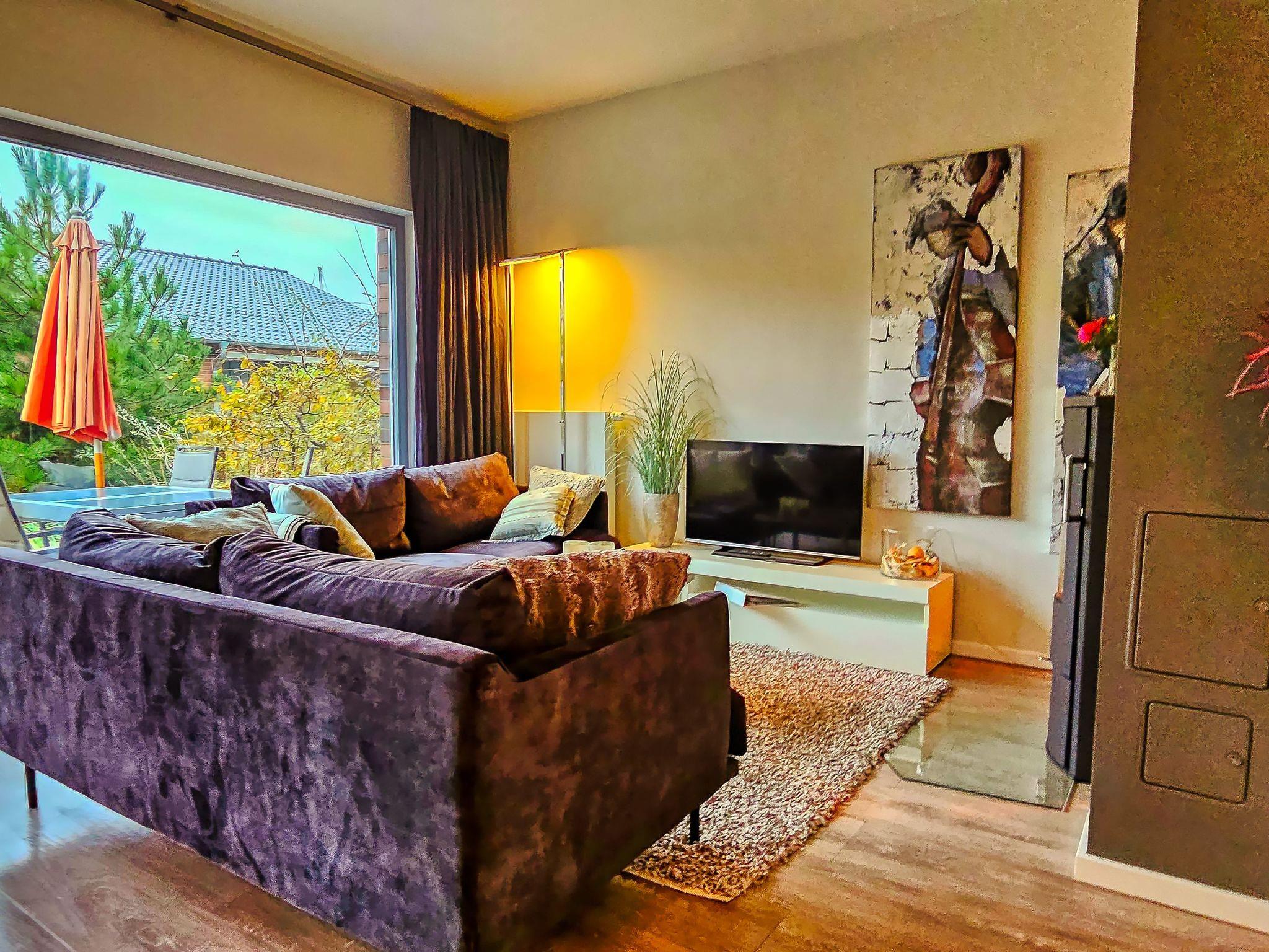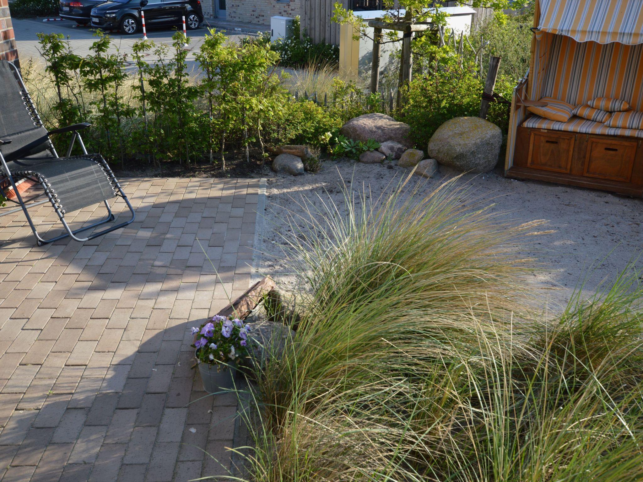 Im Erdgeschoss befindet sich eine hochwertige, zum Essplatz mit seinem großen Tisch hin, offene Küche. Der Wohnbereich mit Kamin lädt in der kühleren Jahreszeit mit seinem flackernden Feuer auf die schönste Art zum Entspannen ein. Auch das im EG gelegene Duschbad inklusive Sauna – empfiehlt sich für einem wohltuenden und entspannenden Aufenthalt nach langen Strandspaziergängen. Vom Wohnzimmer gelangen Sie auf eine zum Yachthafen hin ausgerichtete voll ausgestattete Terrasse und einem nur von Ihnen zu betretenden kleinen Garten als Dünenlandschaft mit Sonnenliegen, Sonnenschirm und dem Strandkorb, der Ihr Urlaubsfeeling geradezu perfekt macht.