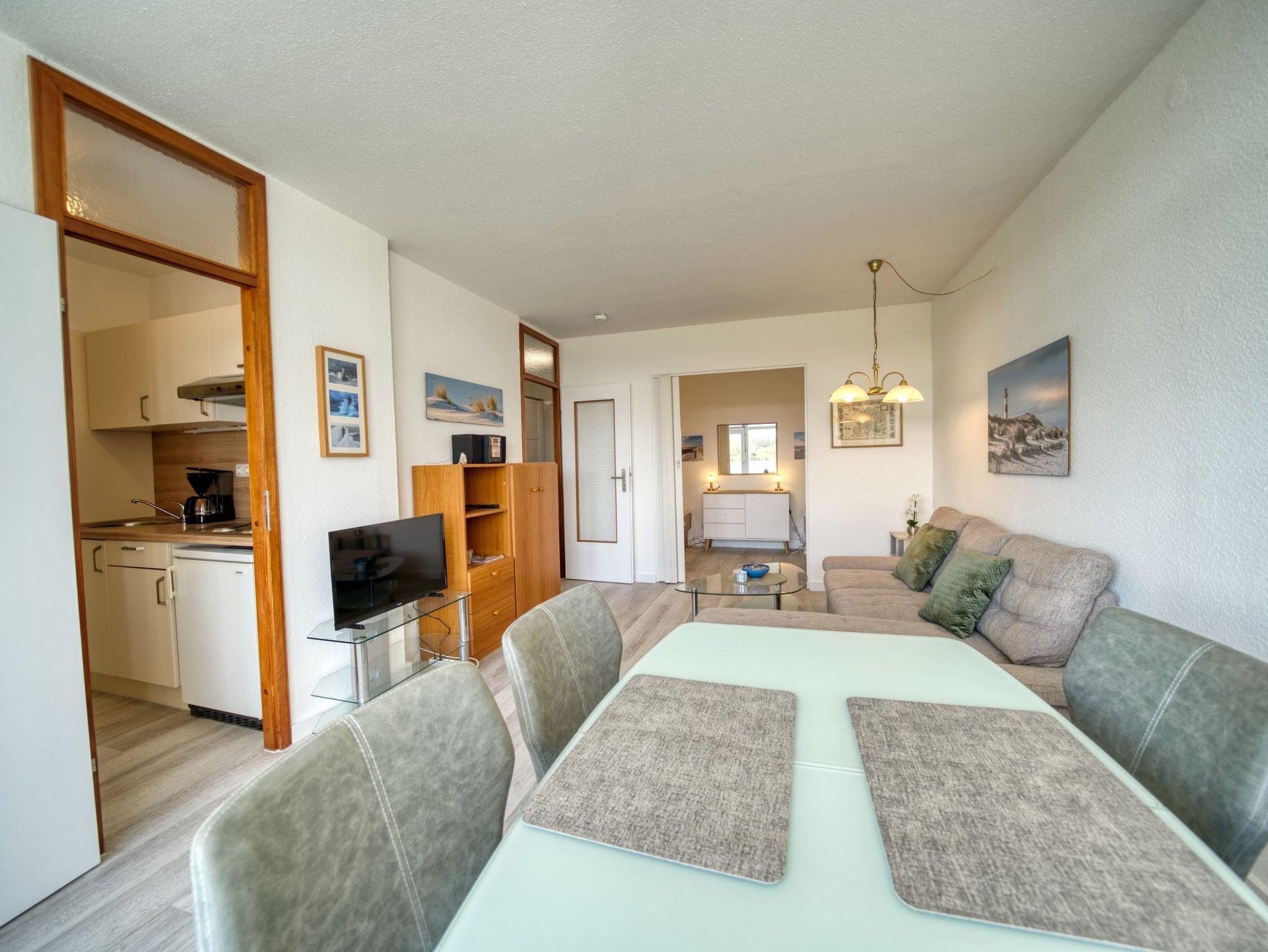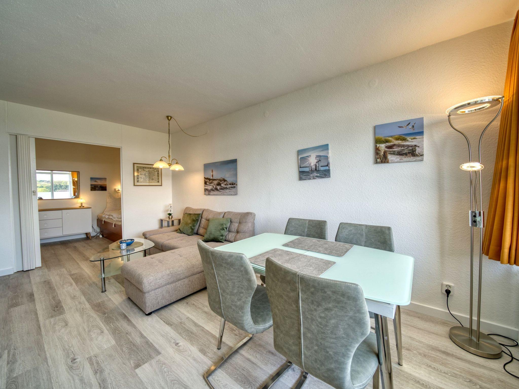 Diese charmante Ferienwohnung in Haus N in der 6. Etage bietet auf 45?m² Platz für bis zu 4 Personen und überzeugt mit einer ruhigen Lage und einem Balkon zur Südseite, der einen herrlichen Blick ins Grüne ermöglicht ? ideal für entspannte Urlaubstage.