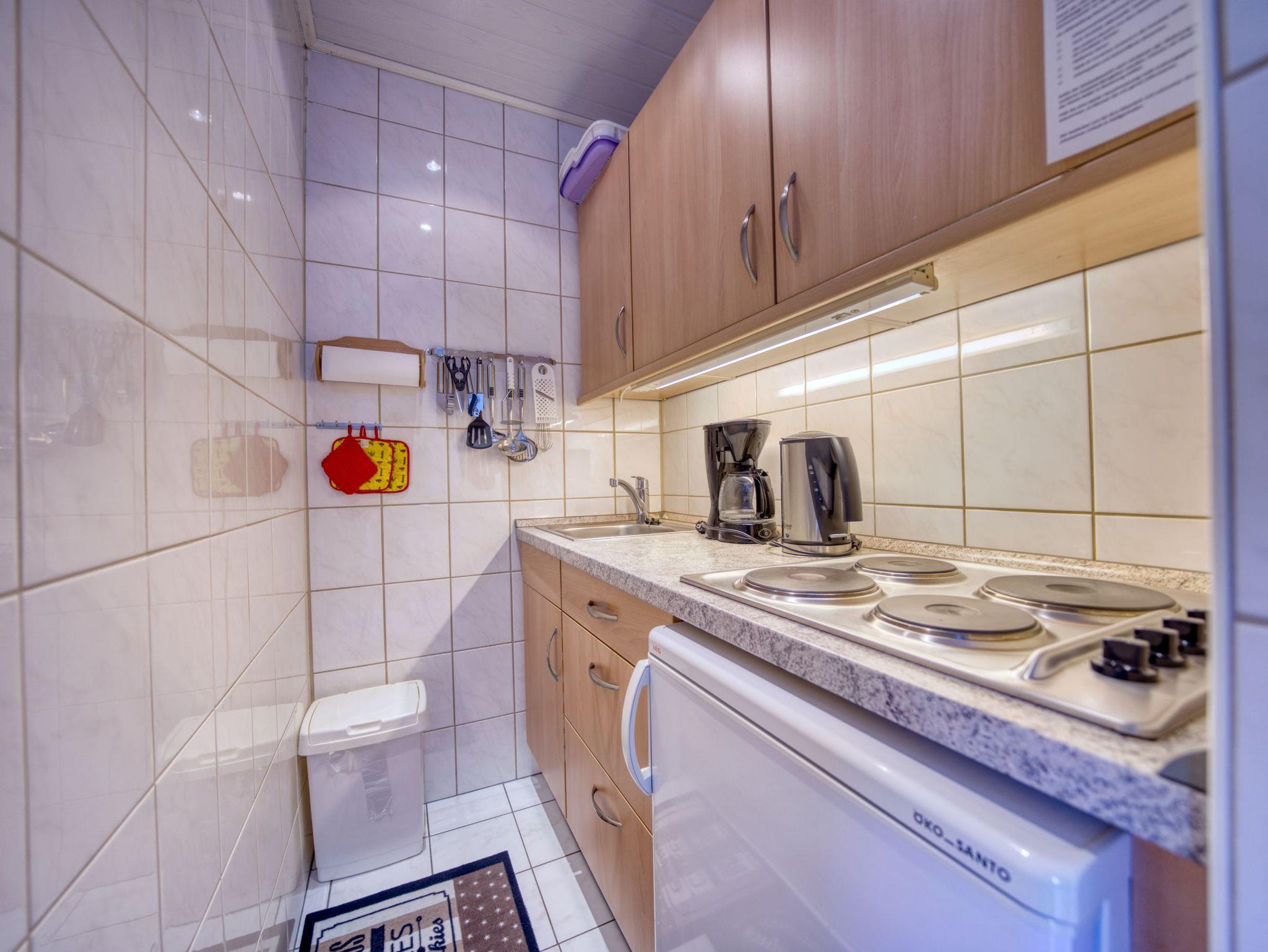 Voll ausgestattete Küche mit Kühlschrank inkl. Gefrierfach, 4-Plattenherd, Mikrowelle