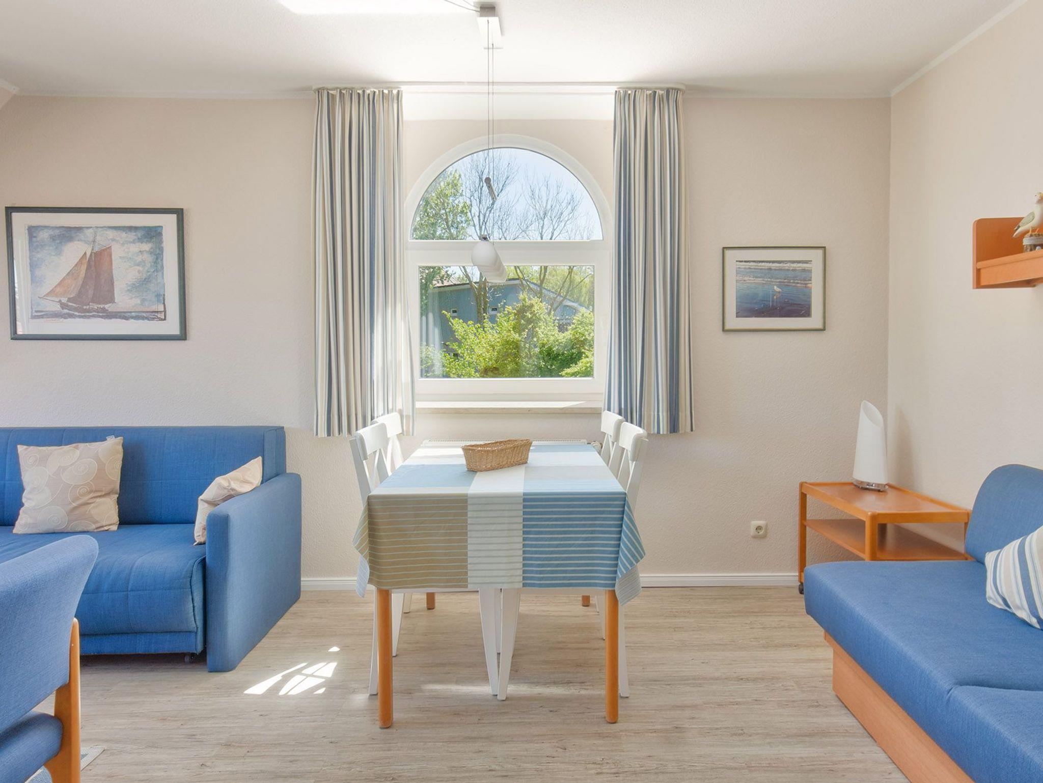 Zur Unterhaltung stehen ein Sat-TV, ein CD-Player und ein WLAN-Hotspot zur Verfügung. Die offene, voll ausgestattete Küche mit Geschirrspüler lässt keine Wünsche offen und bietet viel Raum für kulinarische Entfaltung. Ein kleiner Essbereich befindet sich direkt in der Küche, während im Wohnzimmer eine größere Essecke für gesellige Runden bereitsteht.