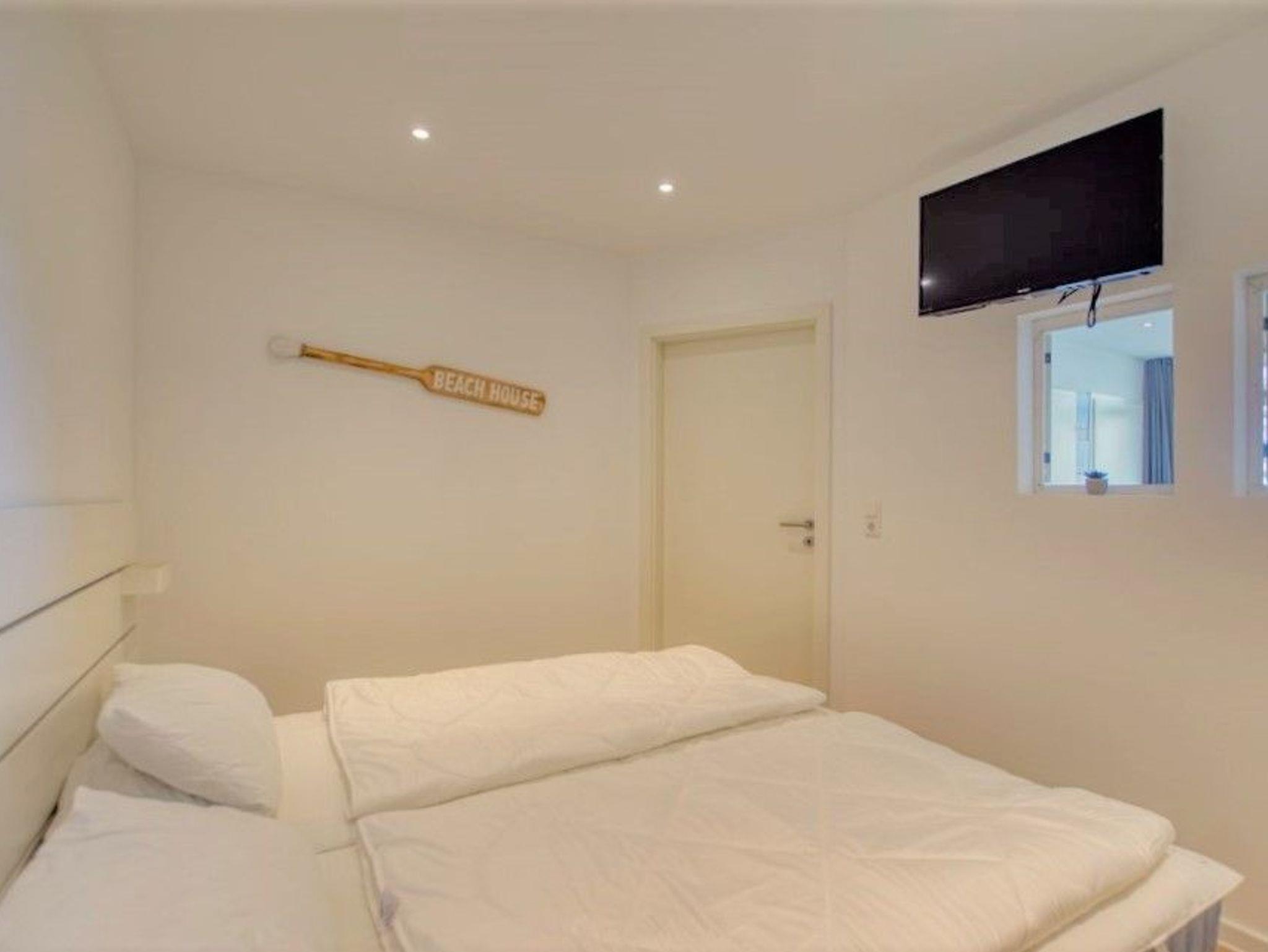 Separater Elternschlafbereich mit komfortablem Doppelbett und Flachbild-TV