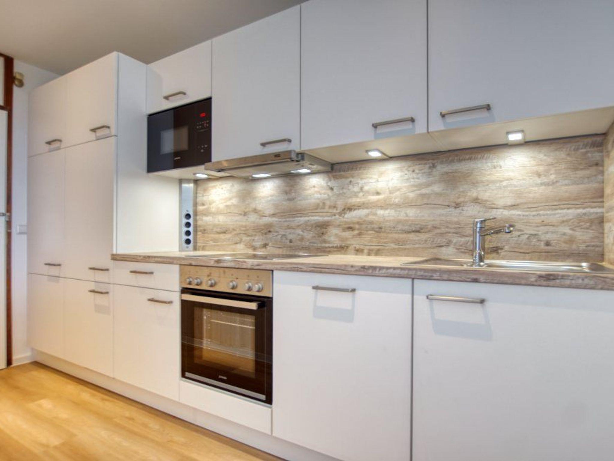 Die offene Küche im Eingangsbereich ist vollständig ausgestattet und lässt keine Wünsche offen: