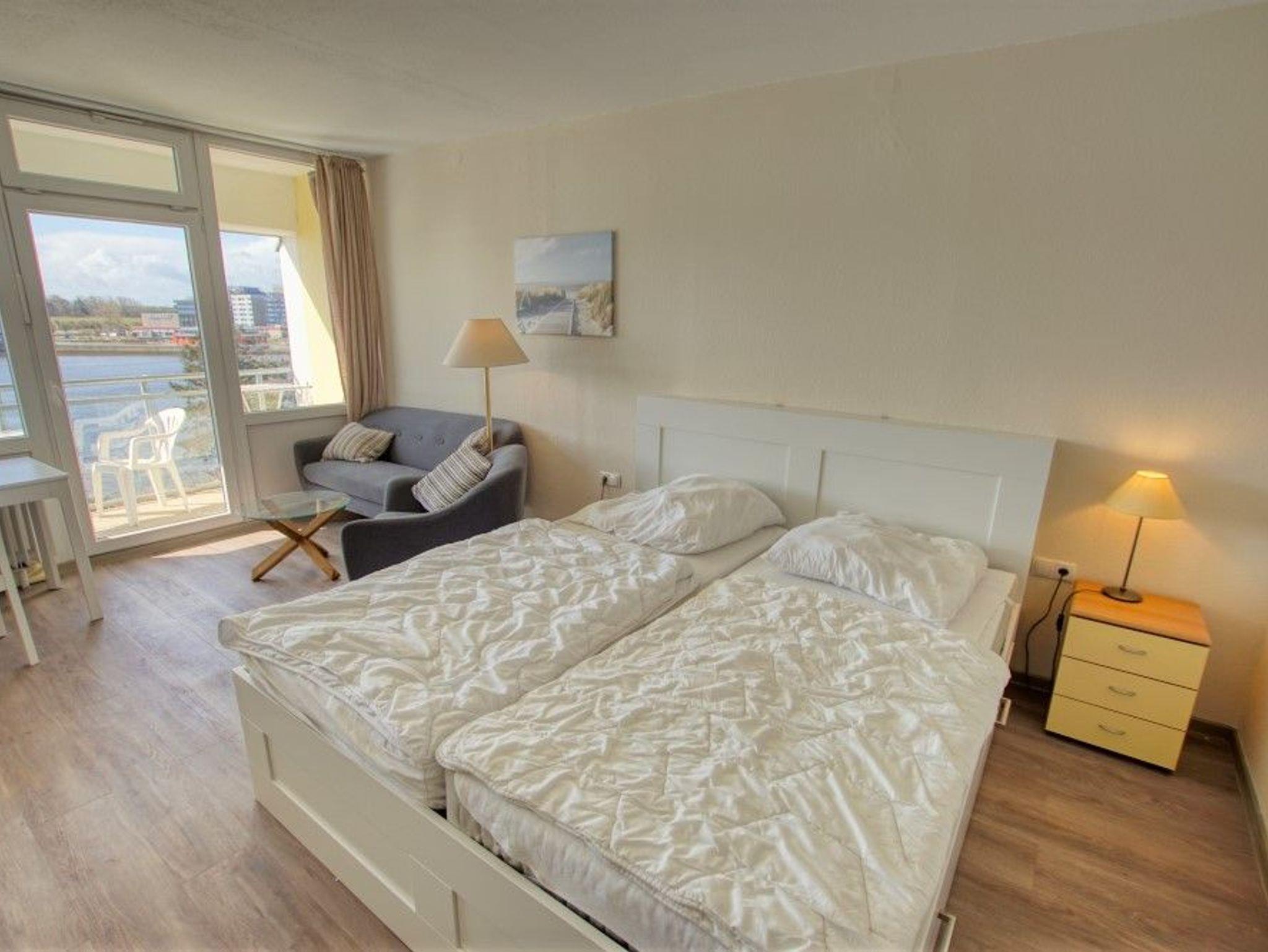 Gemütliche Ferienwohnung mit Balkon und Seeblick am Strand von Heiligenhafen.
