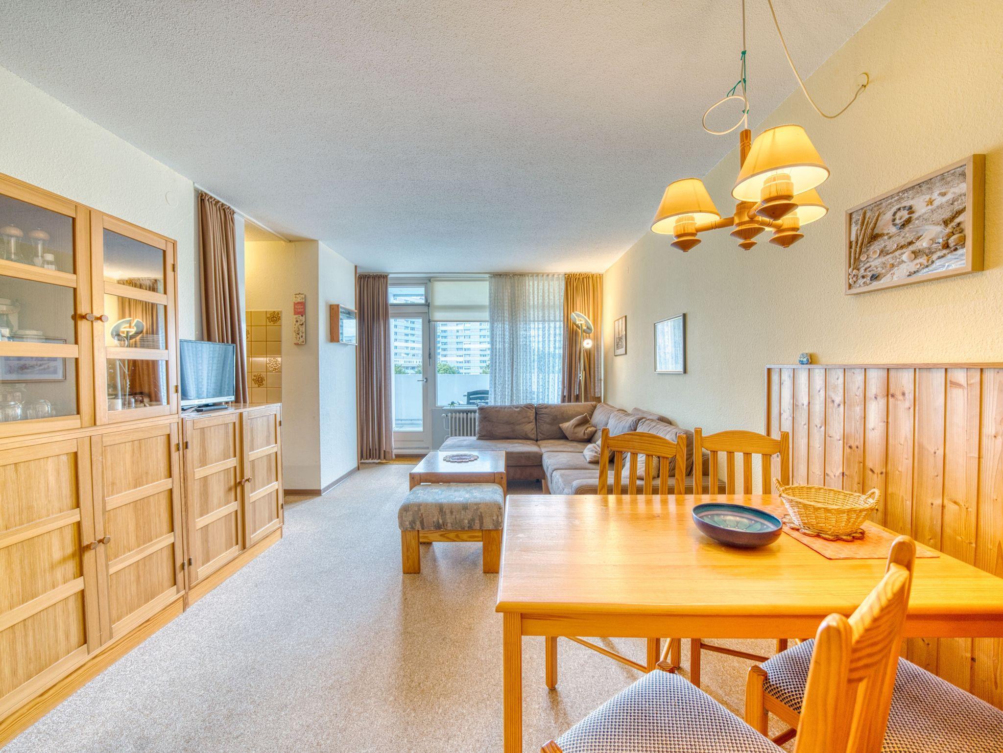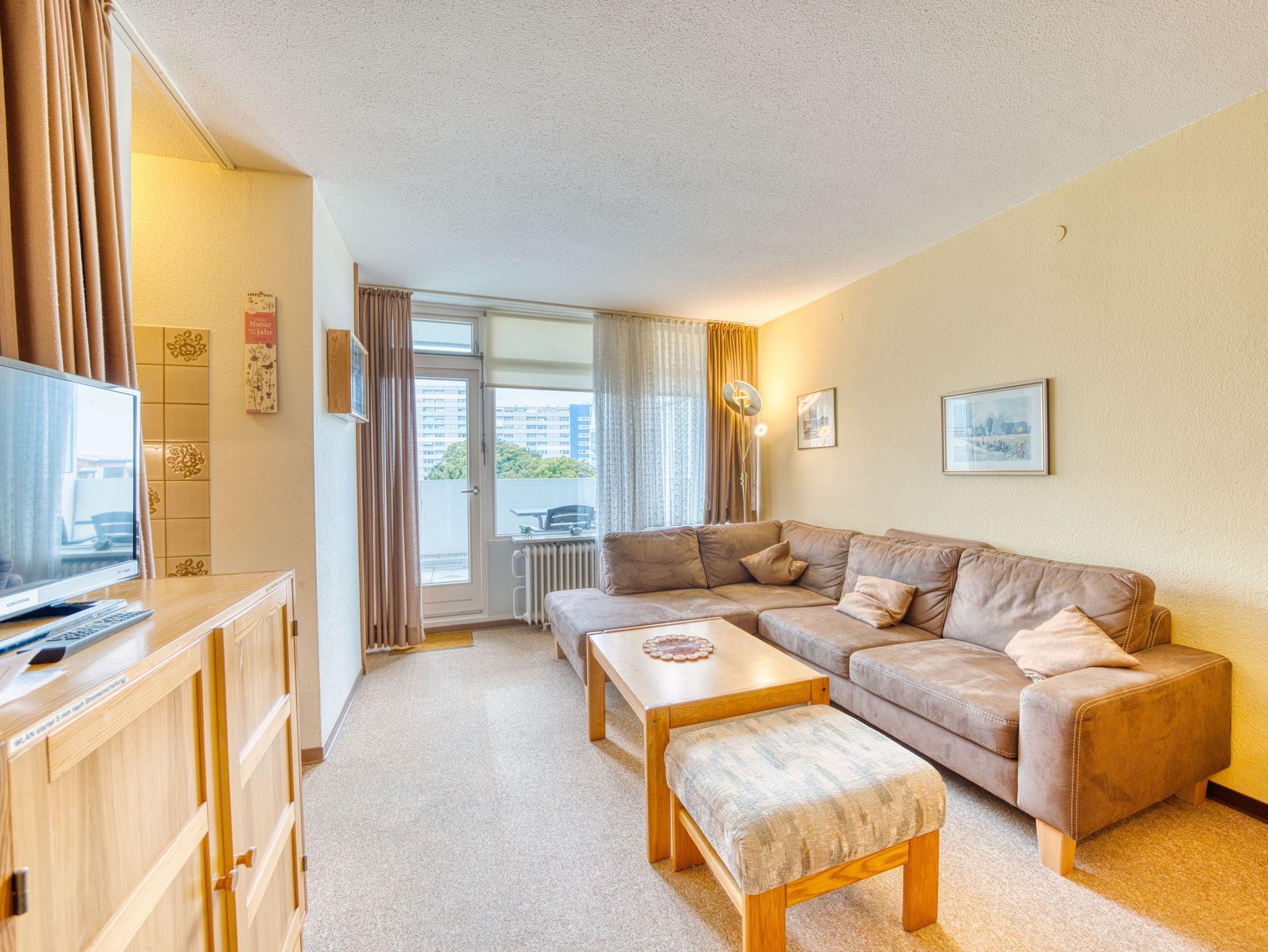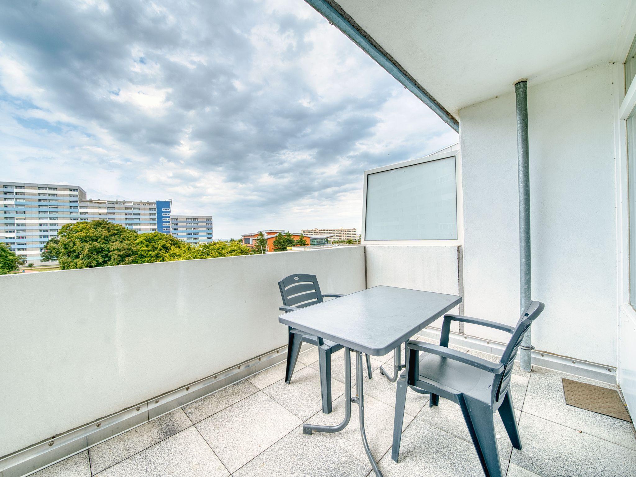 Die Wohnung liegt im Haus O im Ferienpark in der 3. Etage, mit großem Balkon zum Innenhof, der einen schönen Blick auf die Grünanlagen bietet.