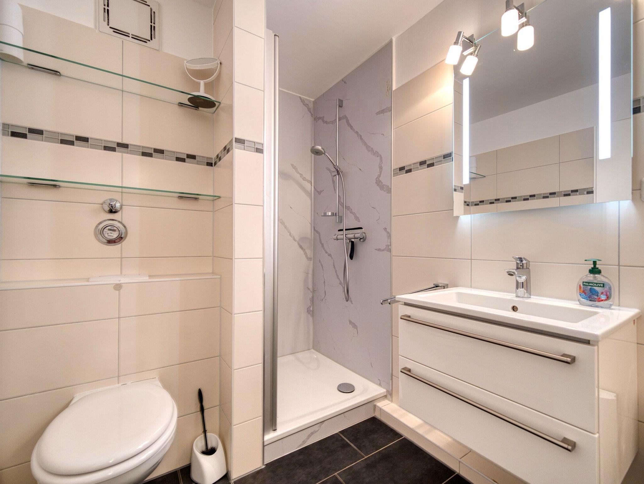 Bad: Mit Dusche (Kabine), WC, Handtuchheizkörper und großzügigem Eingangsbereich mit Stauraum