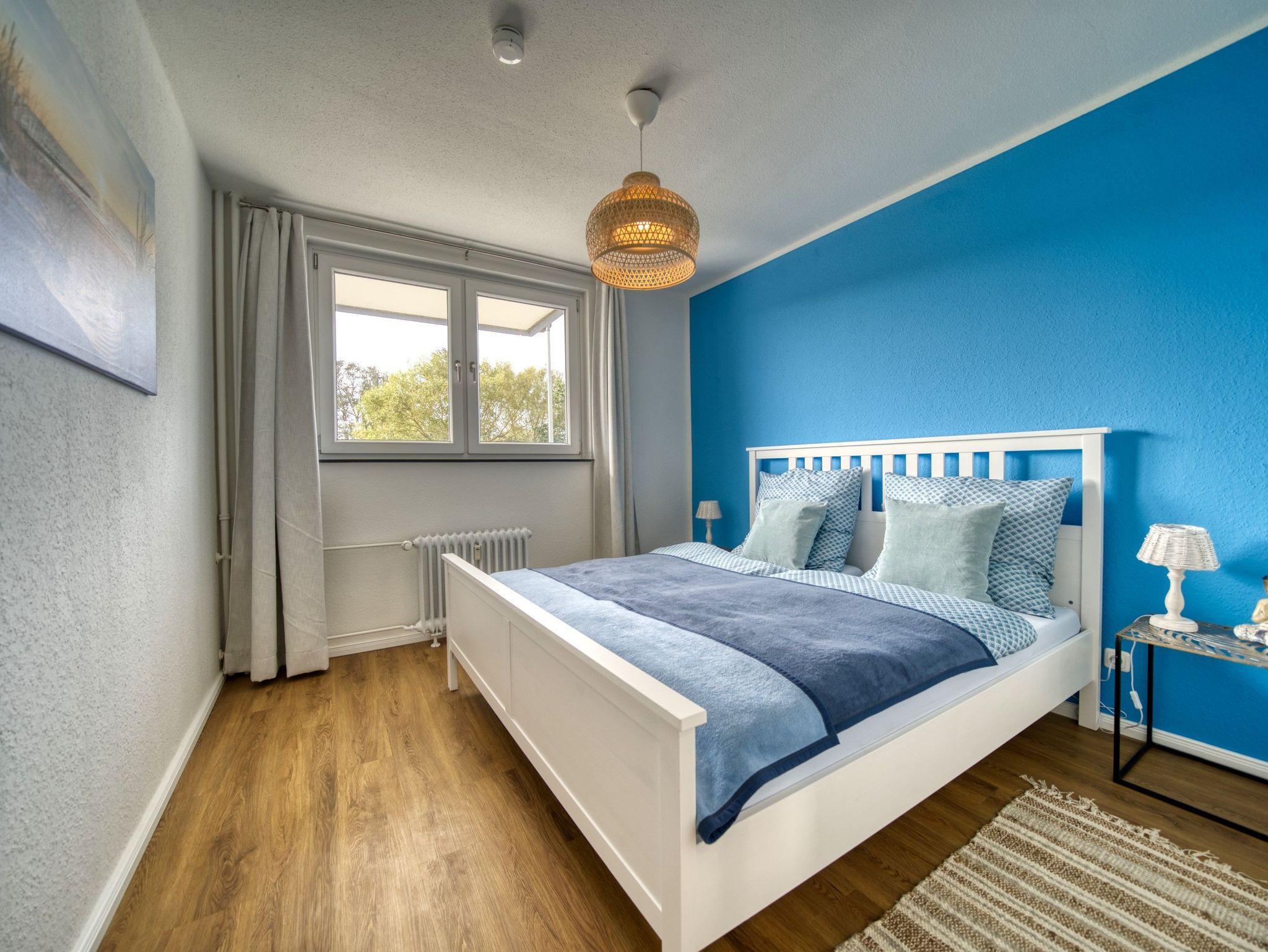 Separates Schlafzimmer mit Doppelbett (180?×?200?cm) und Fenster