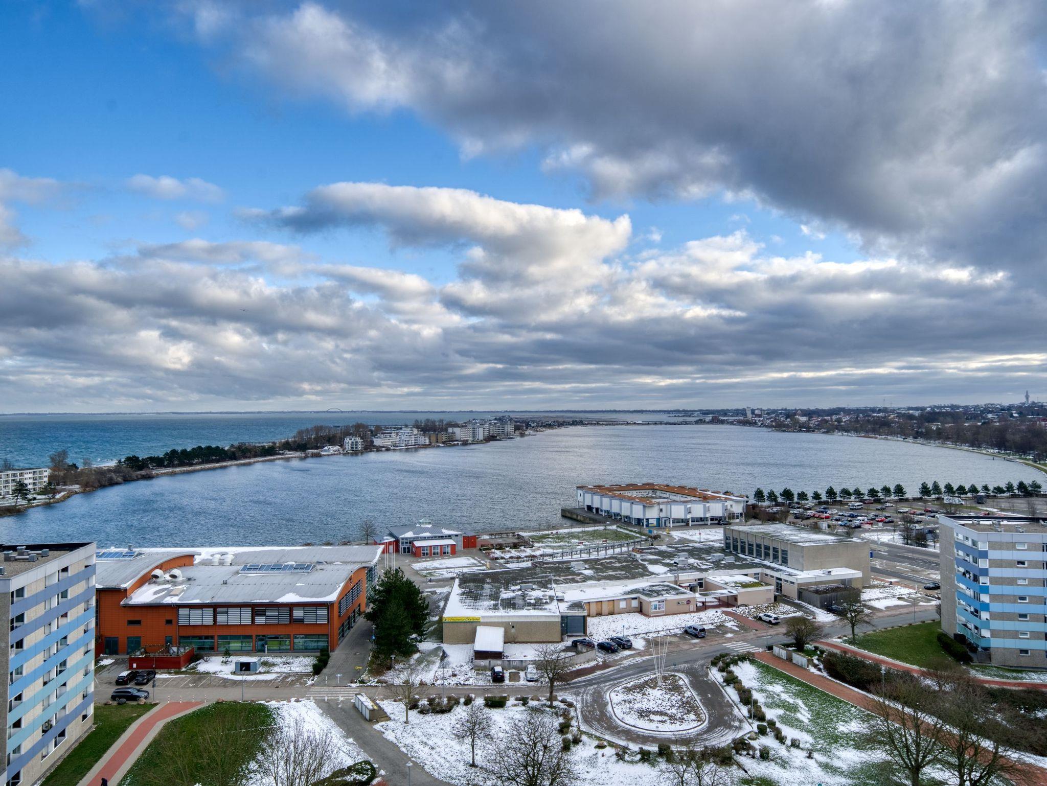 Moderne Ferienwohnung im 14. Stock mit Balkon und traumhaftem Meerblick in Heiligenhafen.