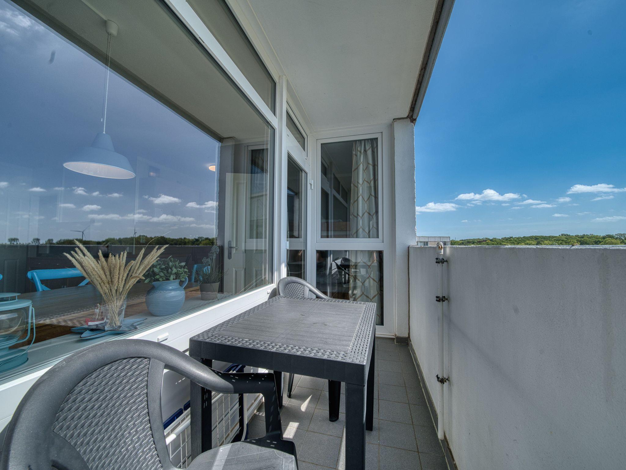 Erleben Sie erholsame Urlaubstage in dieser charmanten Ferienwohnung im Haus K des Ferienparks Heiligenhafen. Die Wohnung liegt in der 8. Etage und bietet auf 45 m² Wohnfläche eine helle und freundliche Atmosphäre. Der Südbalkon gewährt einen weiten Blick auf die gepflegten Grünanlagen perfekt für Sonnenstunden und entspannte Auszeiten.