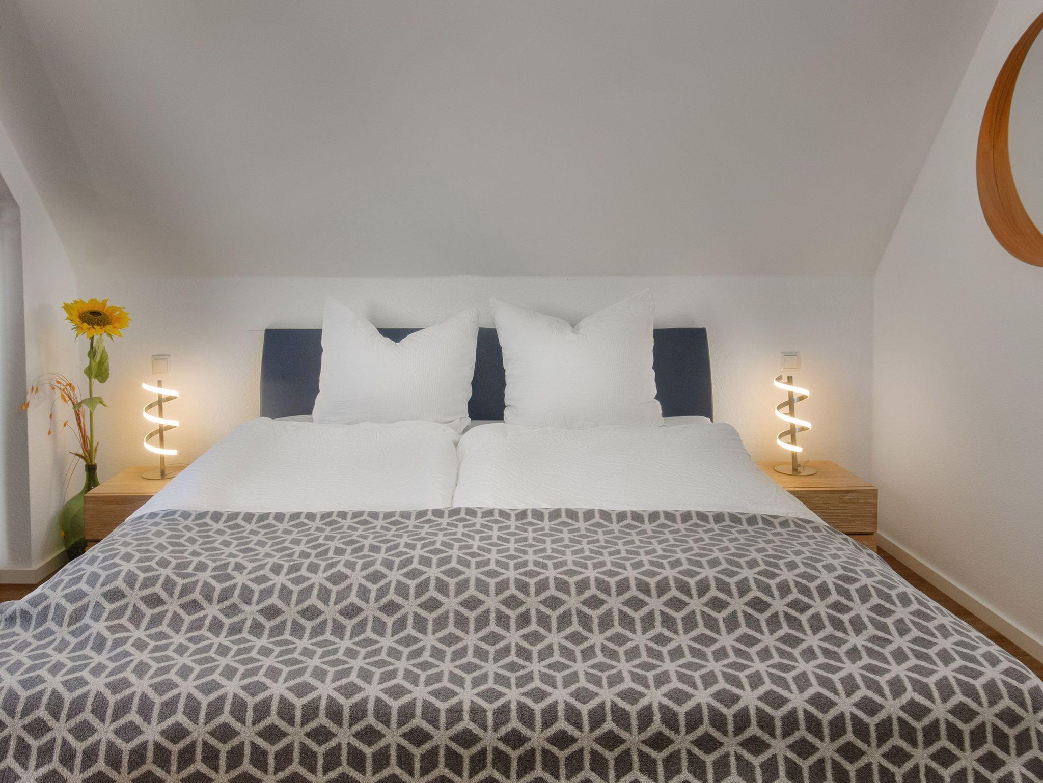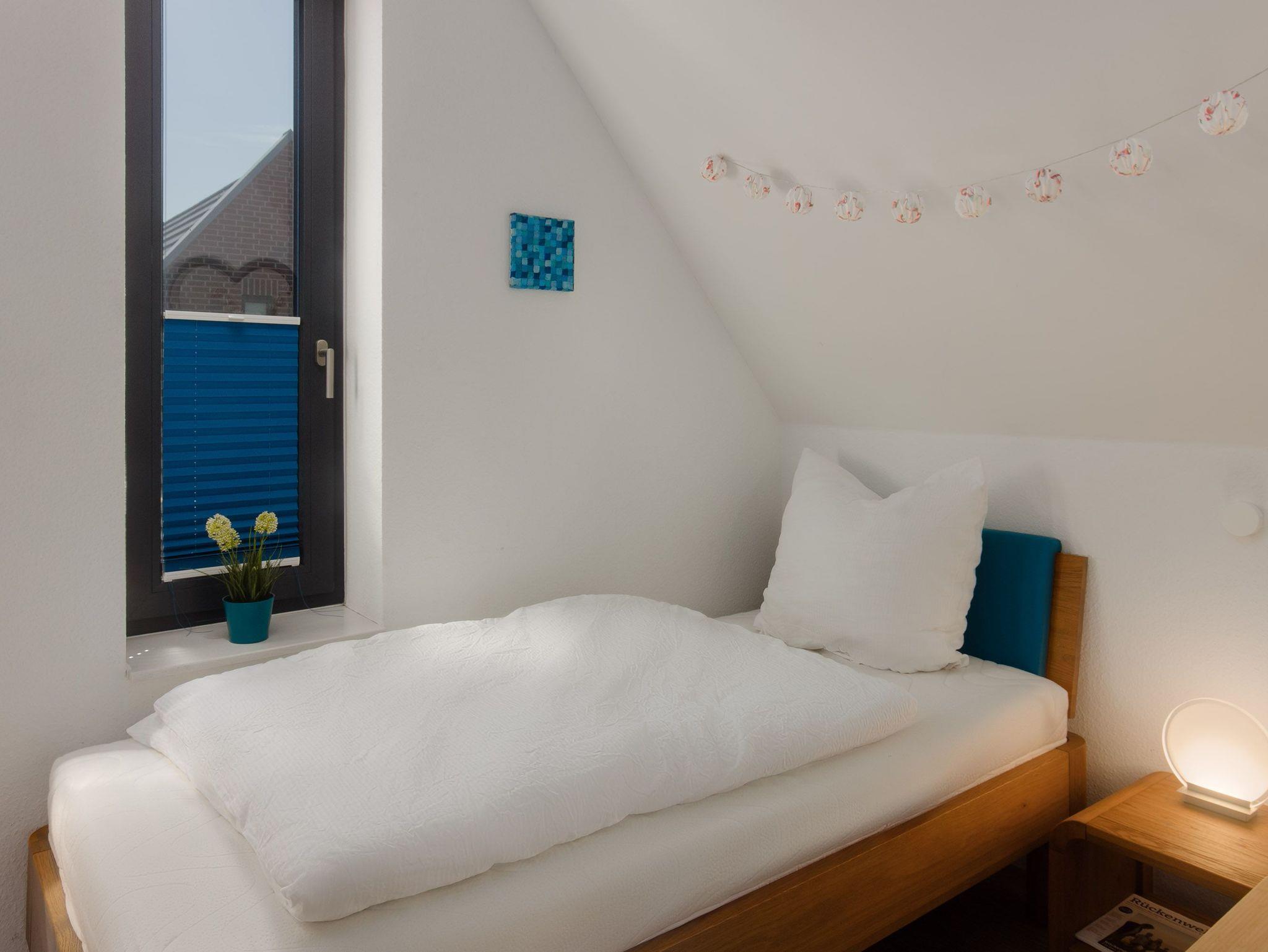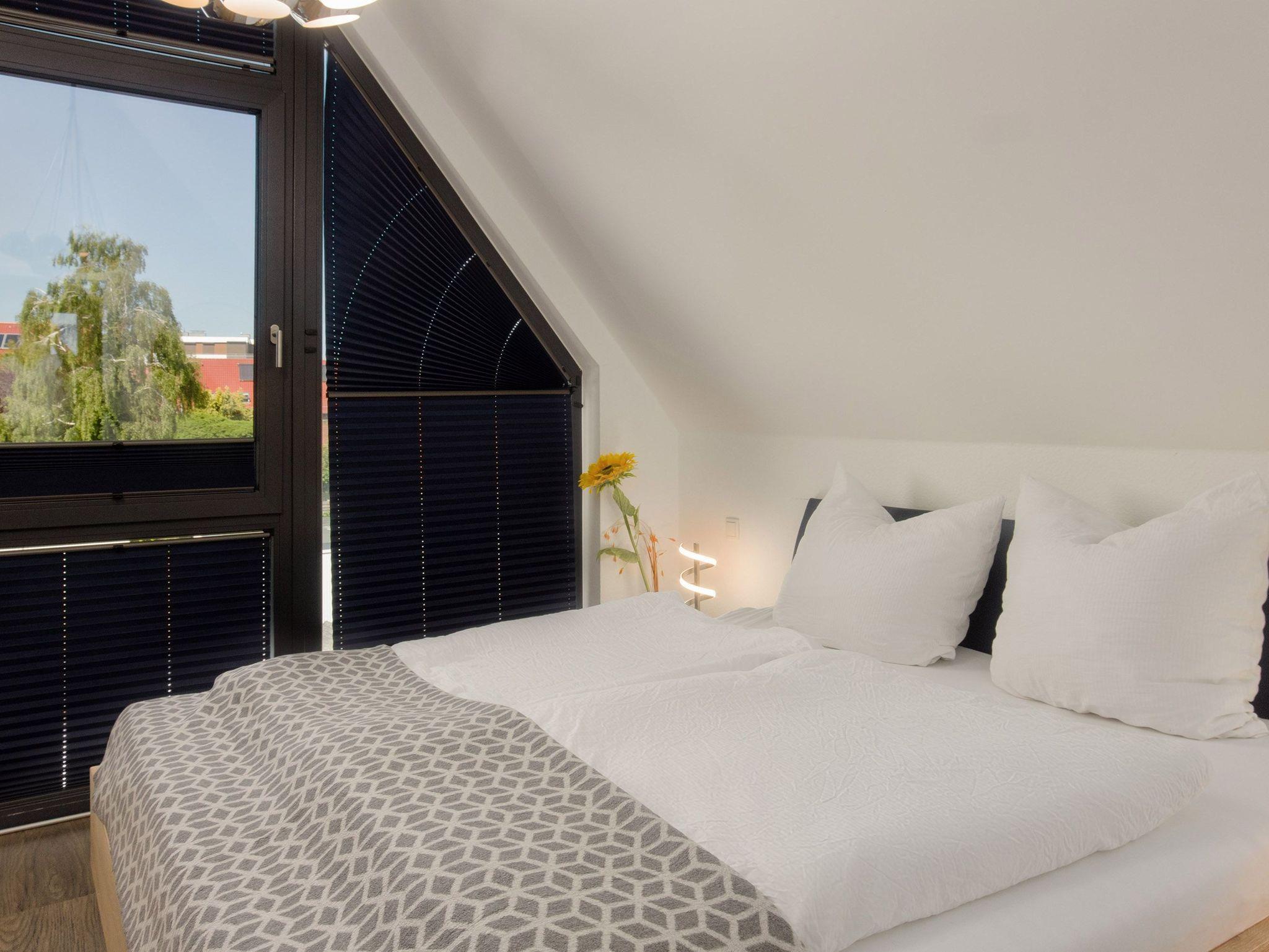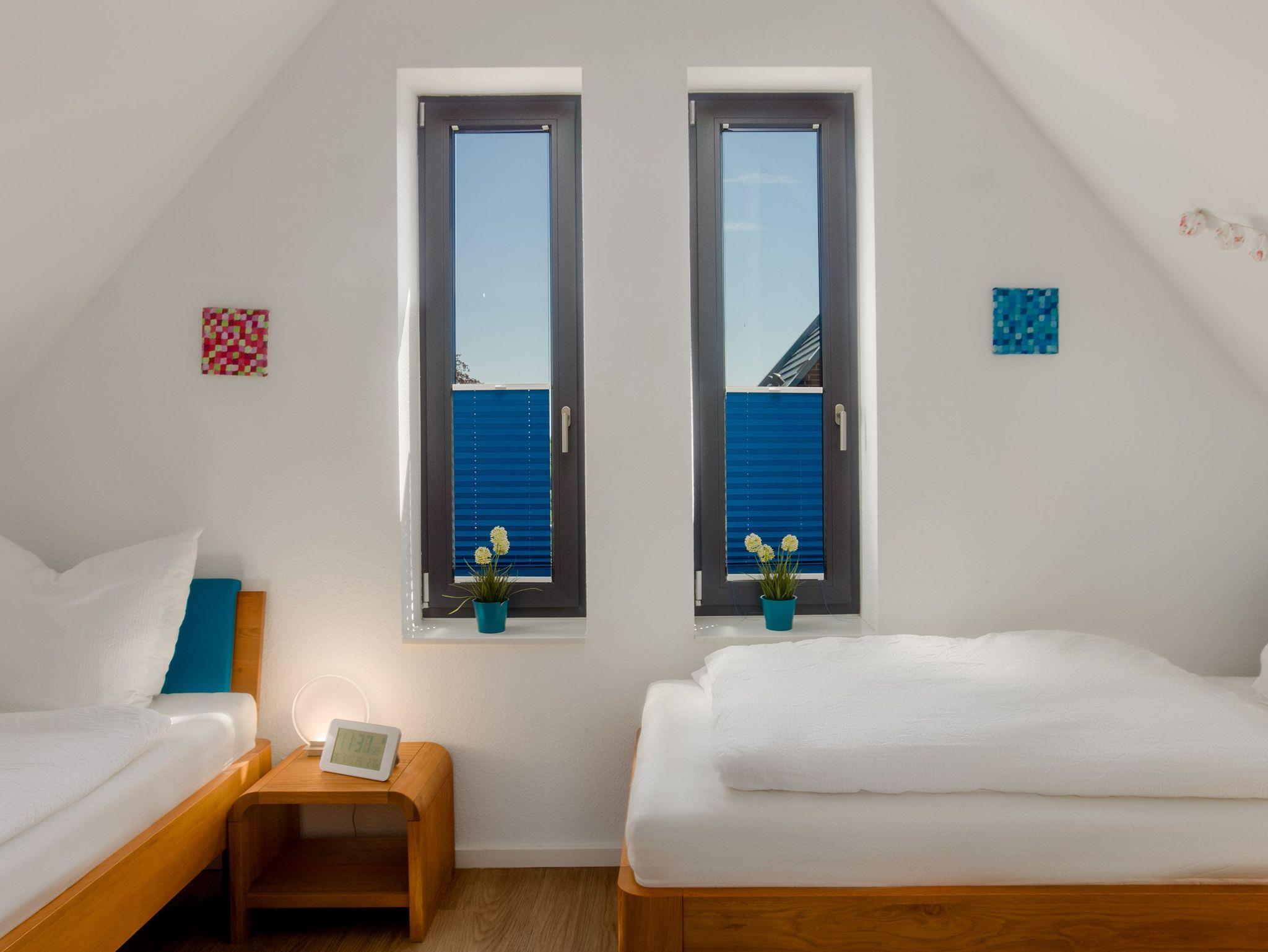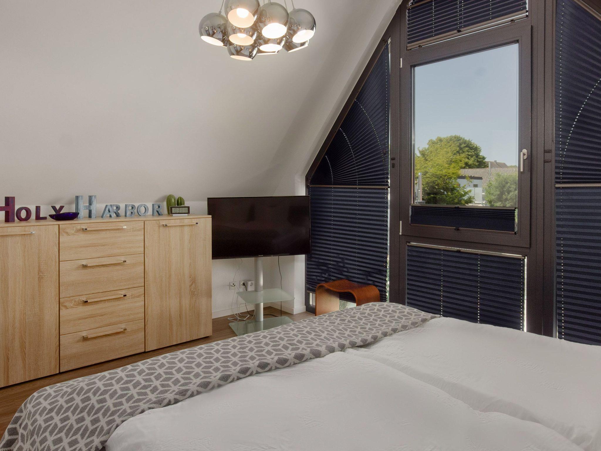 Für Unterhaltung ist ebenfalls gesorgt: Ein HD-TV und ein DVD-Recorder sind selbstverständlich vorhanden. Das Ferienhaus eignet sich besonders für Familien und Kleingruppen, da es über drei gemütliche Schlafzimmer verfügt. Im ersten Obergeschoss befindet sich ein Schlafzimmer mit Doppelbett, während das Dachgeschoss ein weiteres Schlafzimmer mit Doppelbett sowie ein Zimmer mit zwei Einzelbetten bietet. Ein Baby-Reisebett und ein Hochstuhl stehen kostenfrei zur Verfügung. Die großzügigen Fensterfronten in den Schlafräumen eröffnen wunderbare Blickwinkel und lassen viel natürliches Licht hinein. Für erholsame Nächte sorgen Verdunklungsvorhänge und Plissees.