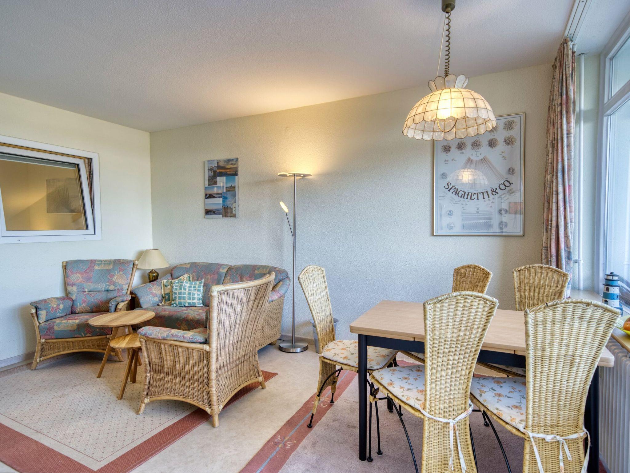 Wohn-Esszimmer mit Flachbild-TV und Radio