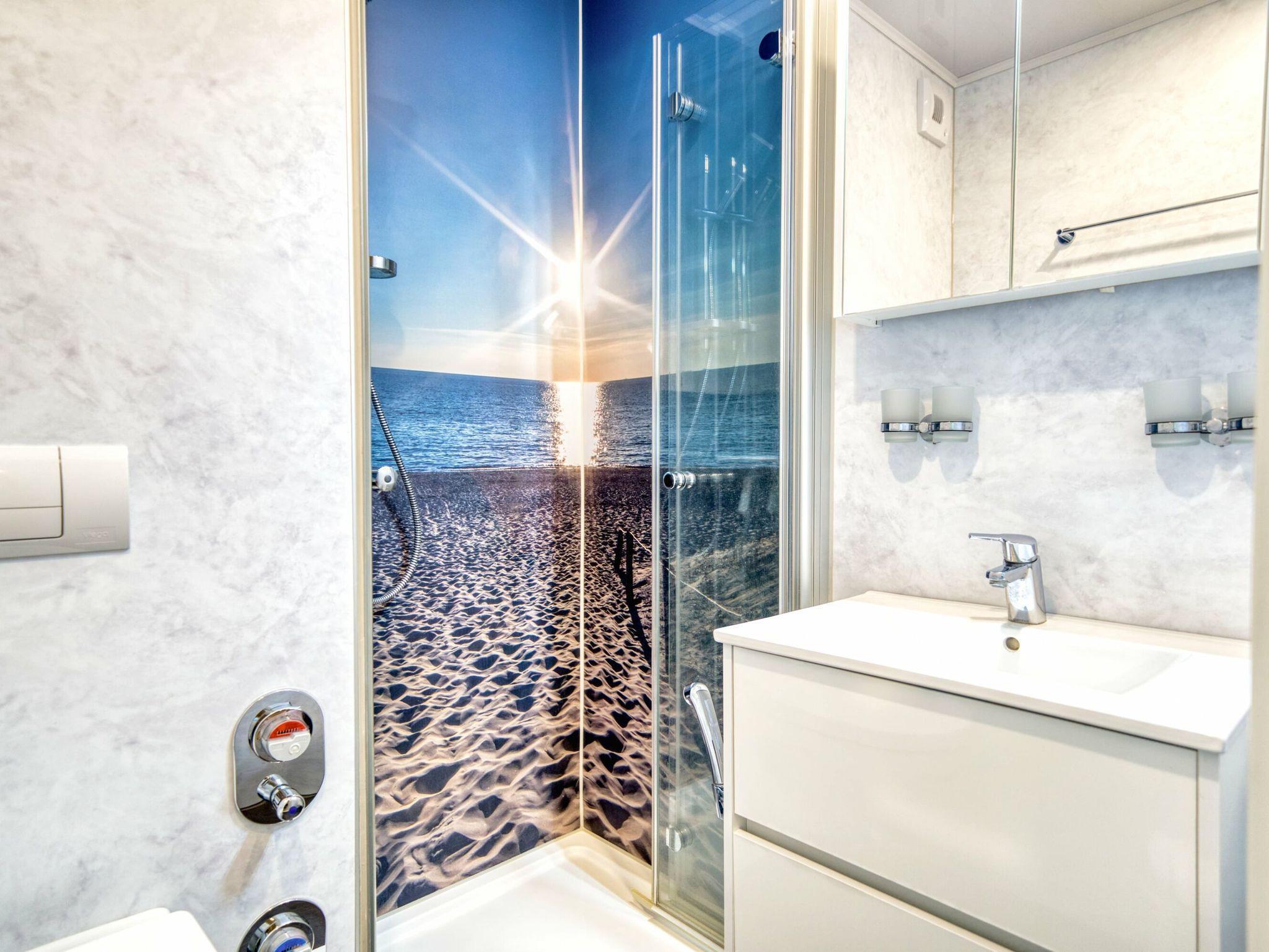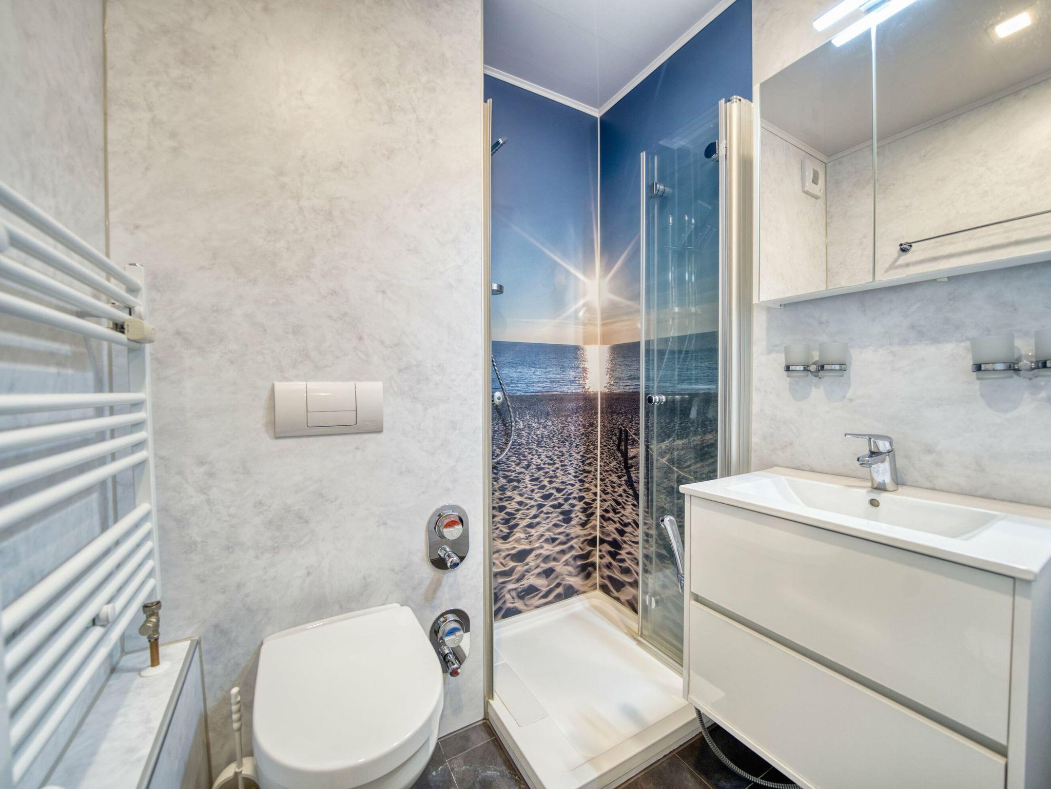 Bad mit WC und Duschkabine (Einstieg leicht abgeflacht)