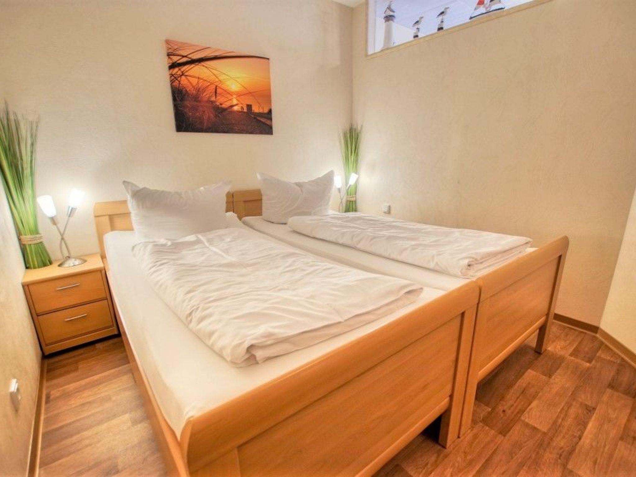 Separater Schlafbereich mit Doppelbett (je 90x200 cm) und eigenem Flachbild-TV