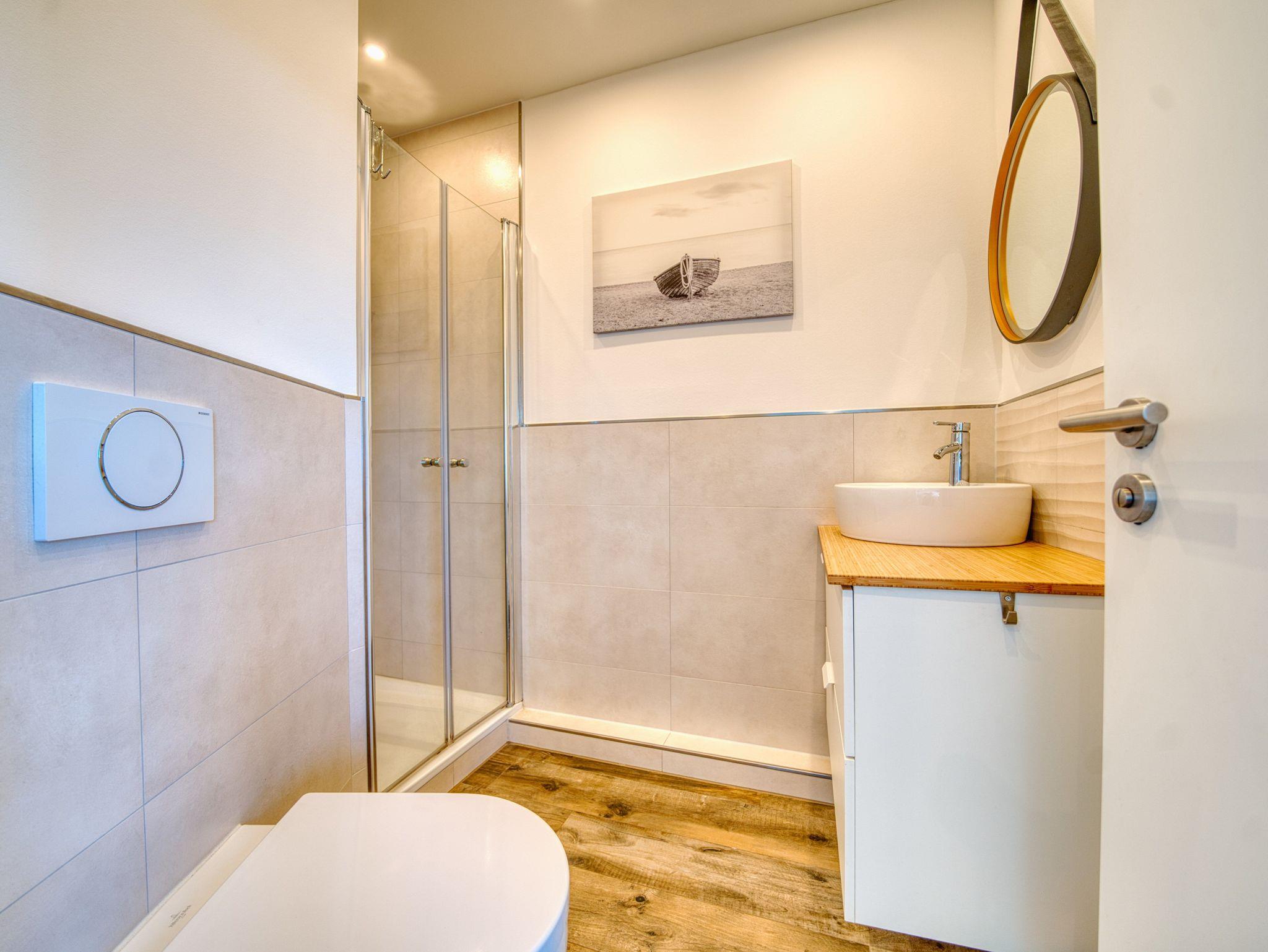 Vergrößertes Bad mit moderner Duschkabine und neuwertiger Ausstattung