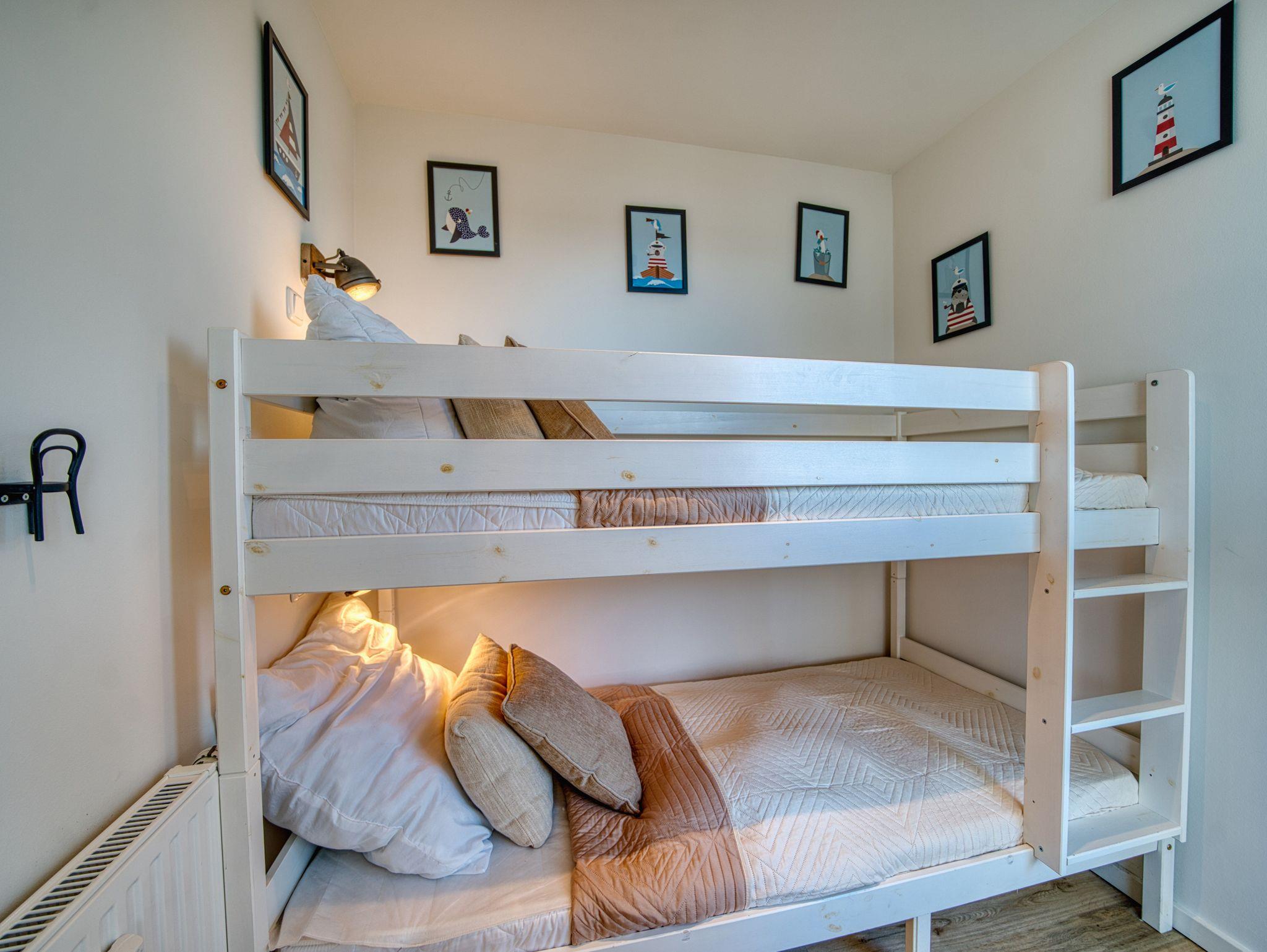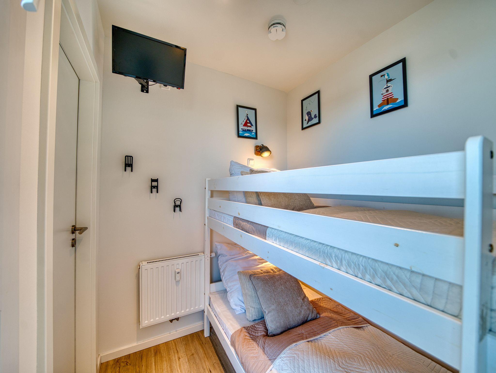 Kinderzimmer mit Hochbett für zwei Personen, TV und zusätzlichem Heizkörper