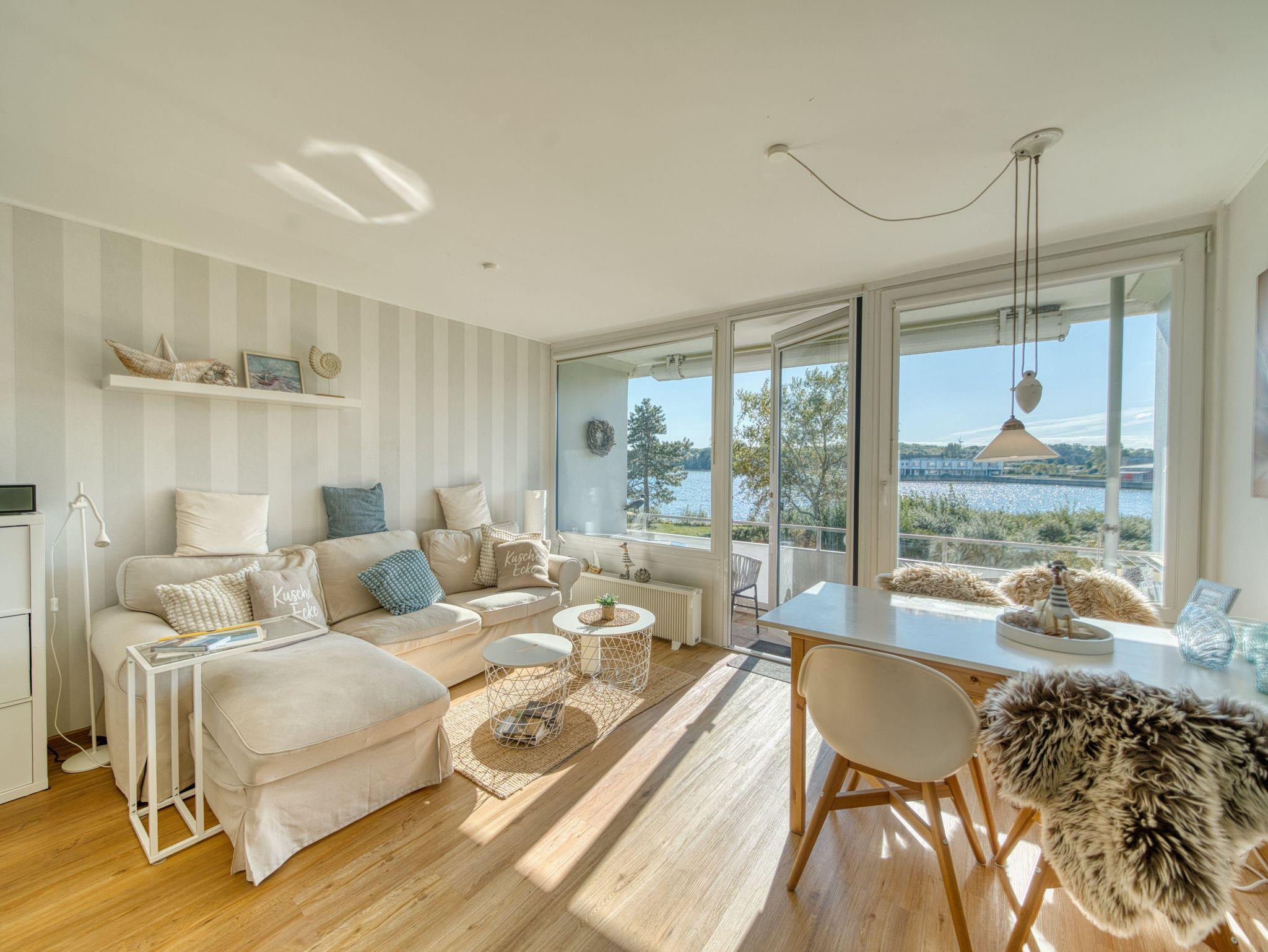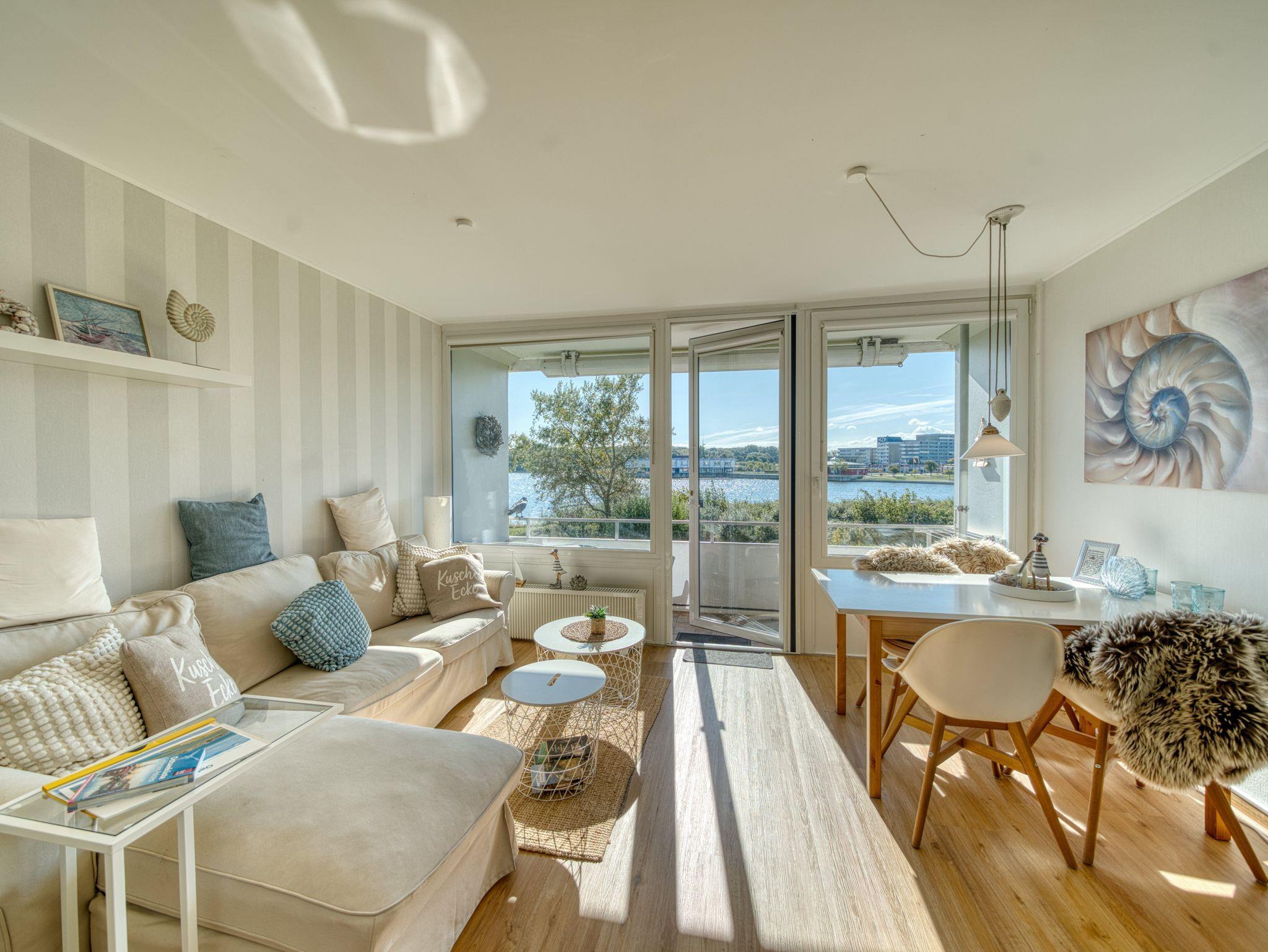 Moderne Ferienwohnung mit Seeblick, Balkon und direkter Strandnähe in Heiligenhafen.