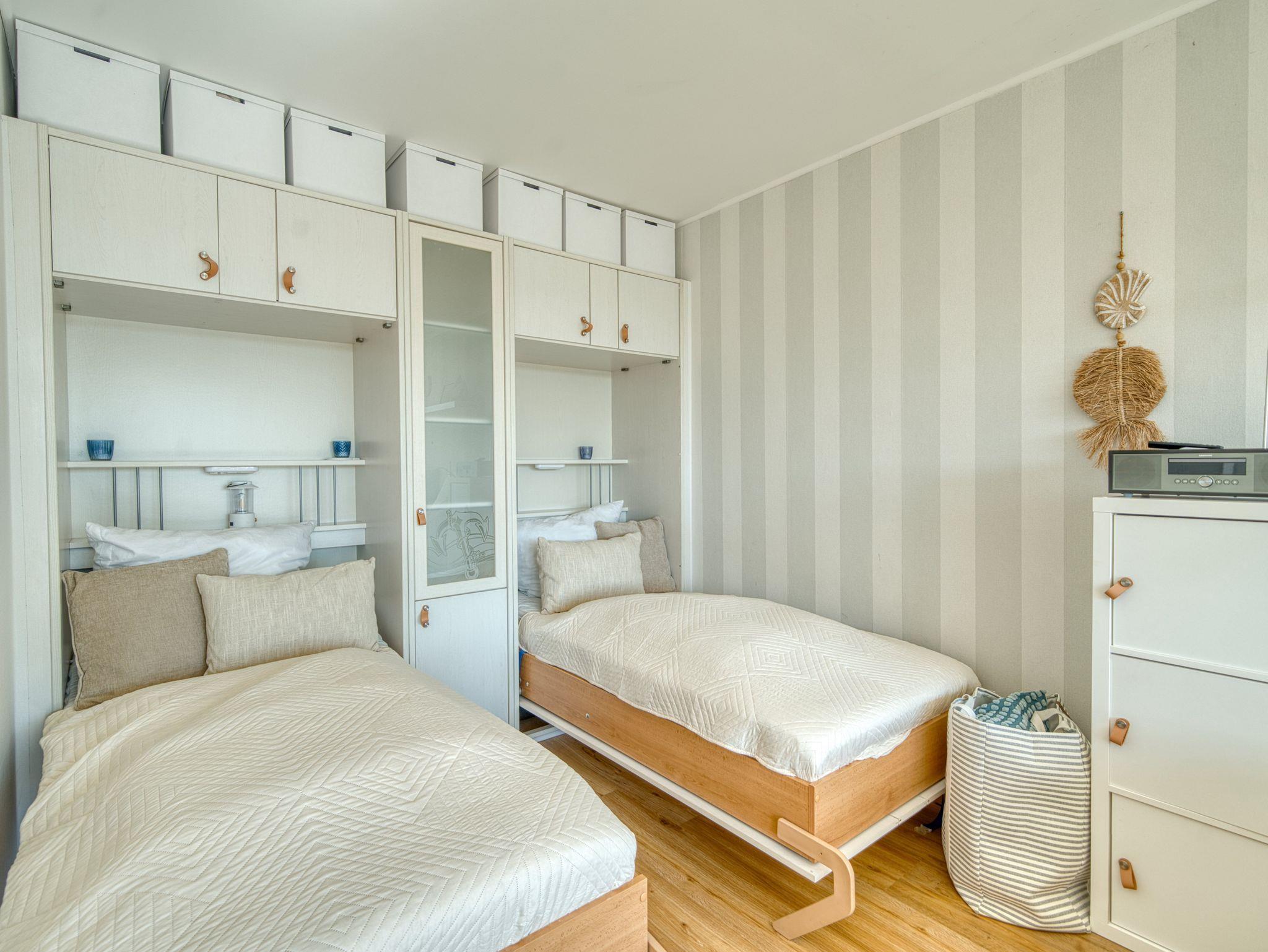 Offener Schlafbereich mit zwei praktischen Schrankbetten