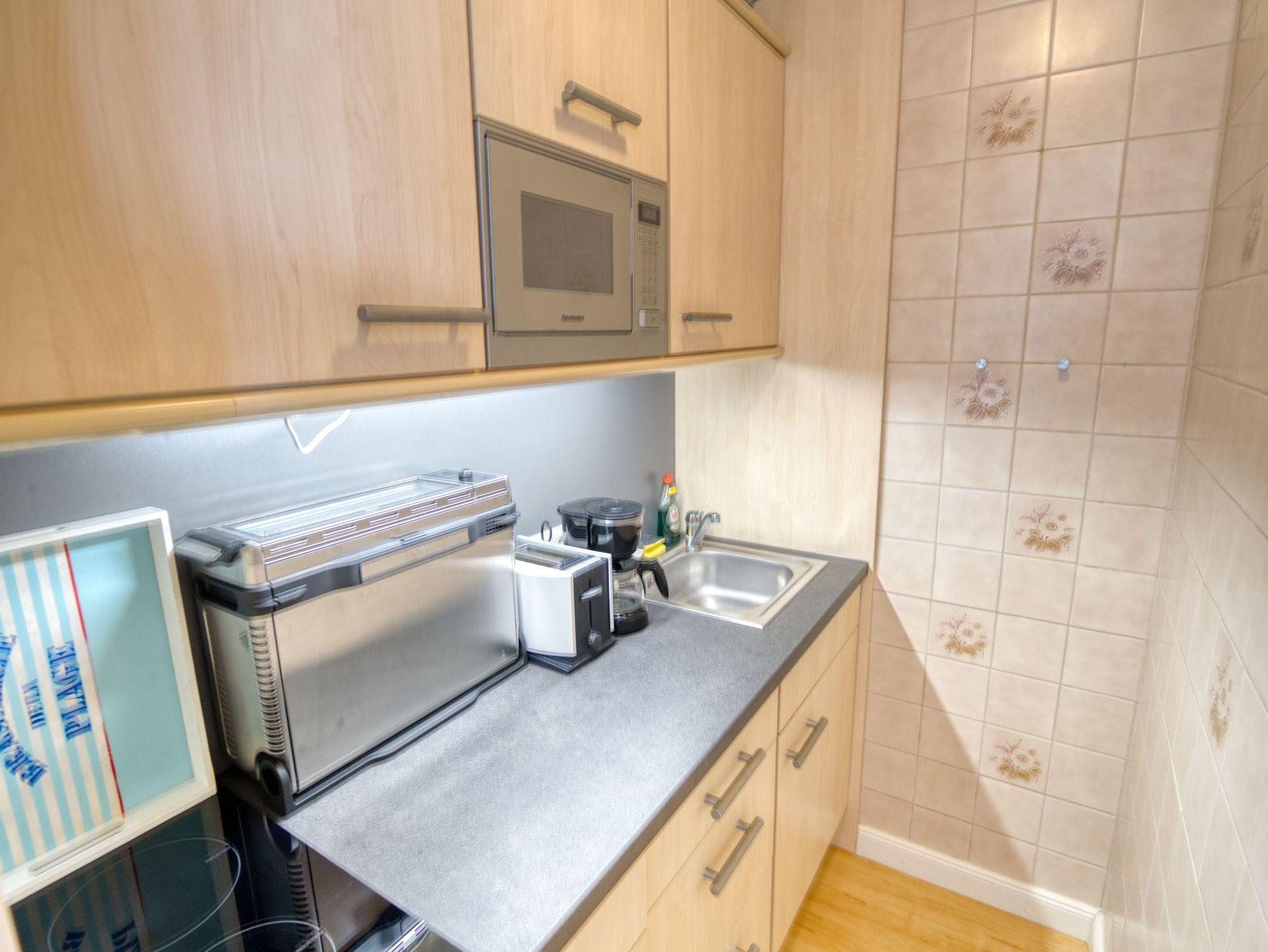 Voll ausgestattete Küche: 2-Platten-Herd, Minibackofen, Toaster, Wasserkocher, Kaffeemaschine