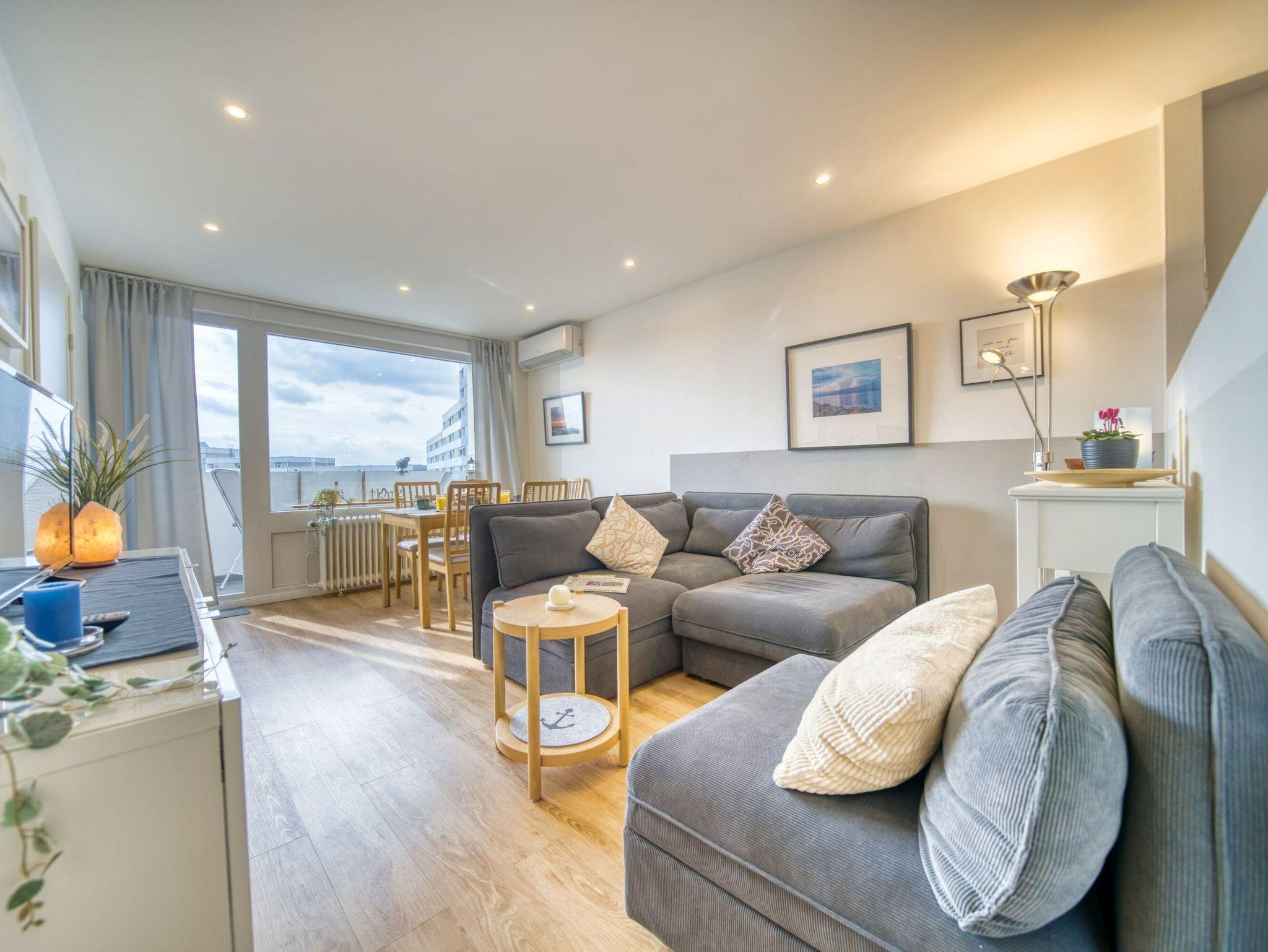 Diese liebevoll eingerichtete 45m²-Ferienwohnung in der 9. Etage des Hauses C im Ferienpark Heiligenhafen bietet Platz für bis zu 4 Personen und überzeugt durch eine praktische Raumaufteilung sowie einen Balkon mit Ausblick auf den Innenhof und den idyllischen Binnensee.