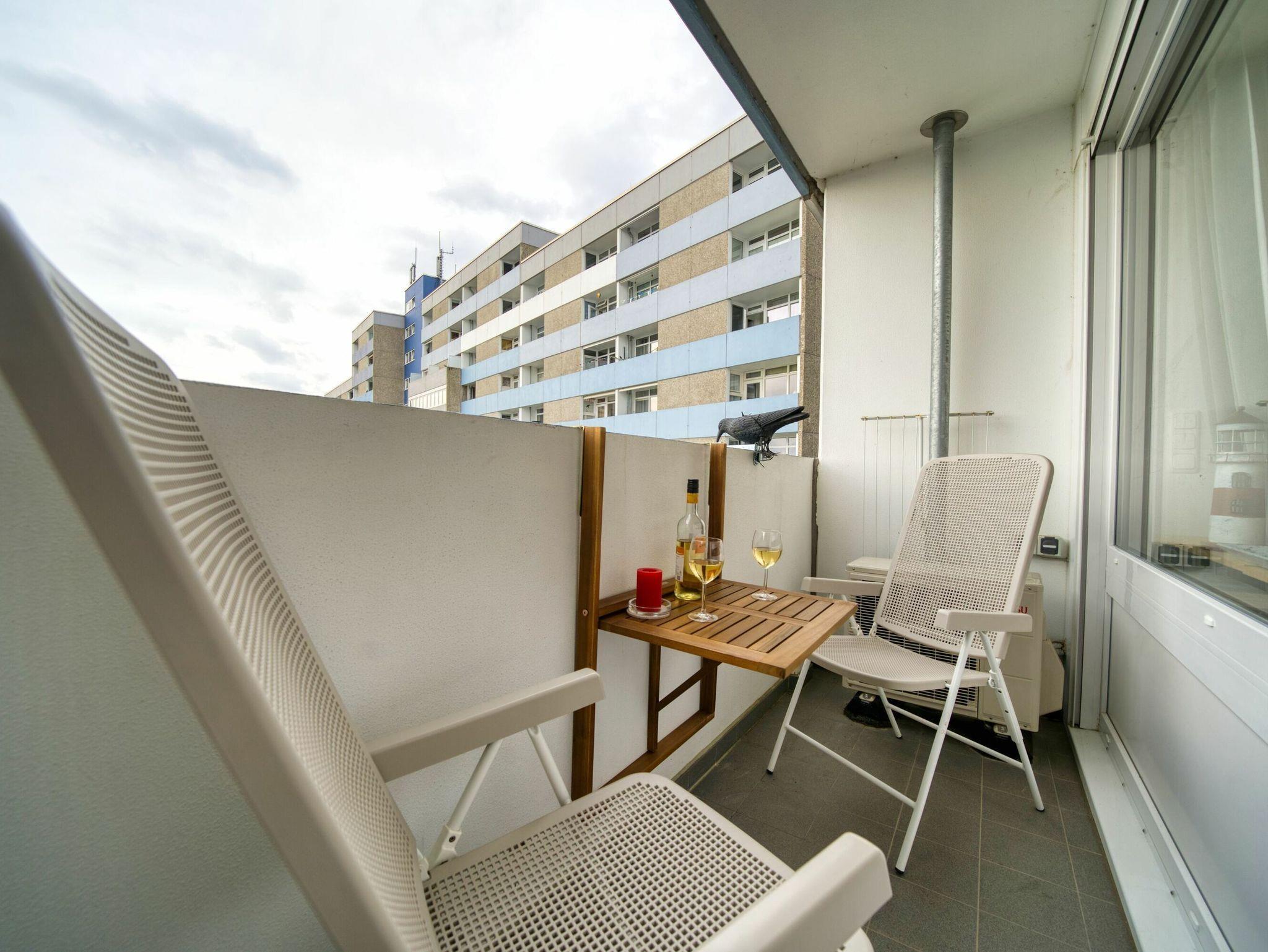 Gemütliche Ferienwohnung mit Balkon und Seeblick im Ferienpark Heiligenhafen, nur 300 m vom Strand entfernt.