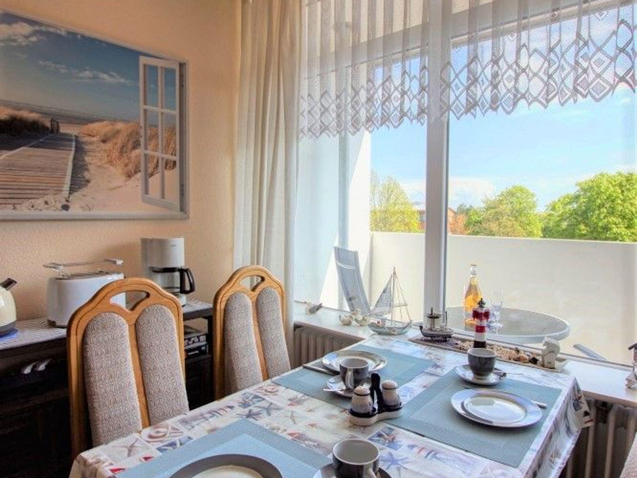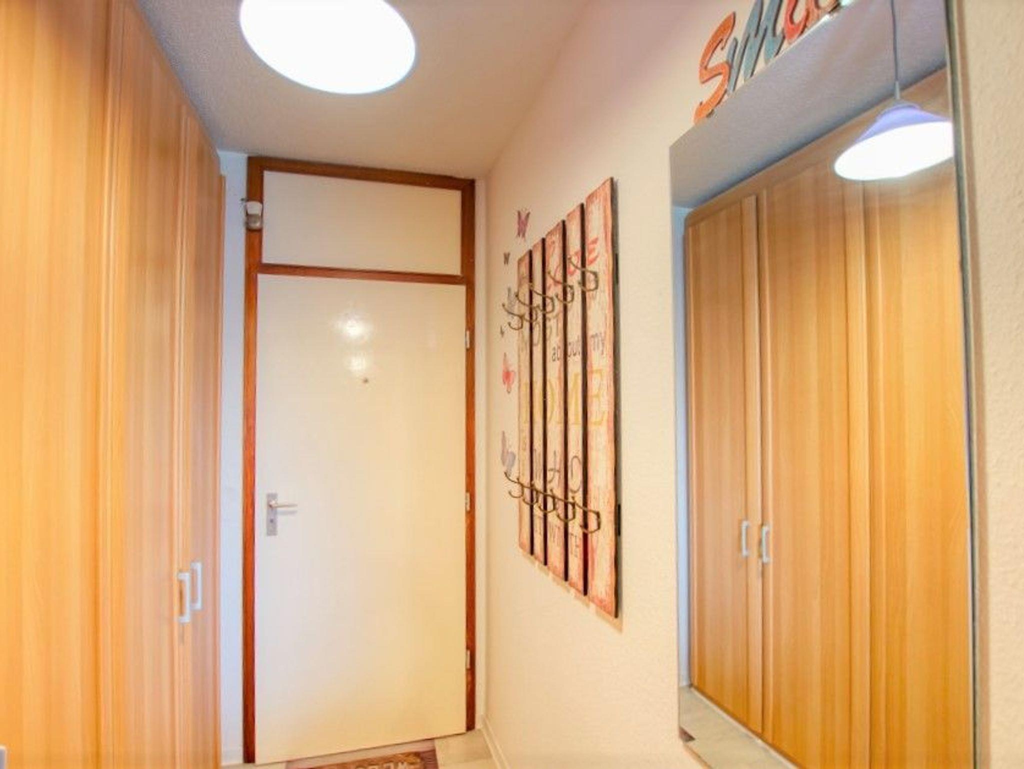 Die Wohnung liegt im Haus G Ferienpark, in der 2. Etage, mit Balkon und Blick auf die gepflegte Grünanlage des Innenhofs in Richtung Binnensee.