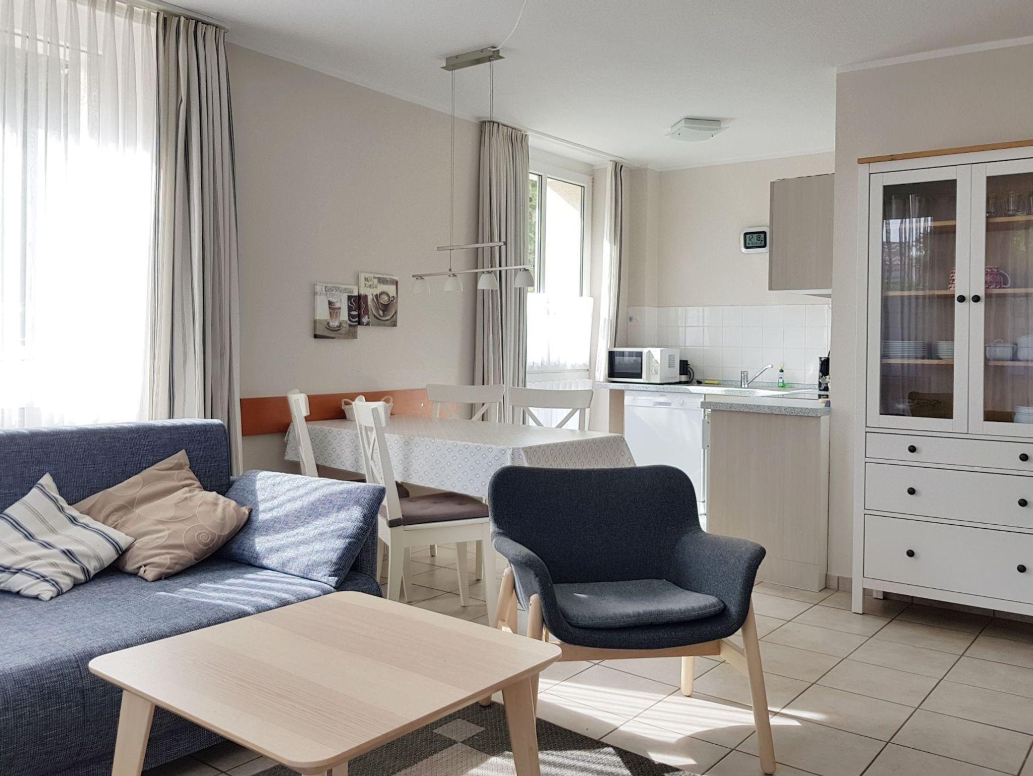 Gemütliches Apartment mit Terrasse, moderner Küche und WLAN in Heiligenhafen, ideal für Familien mit Hund.
