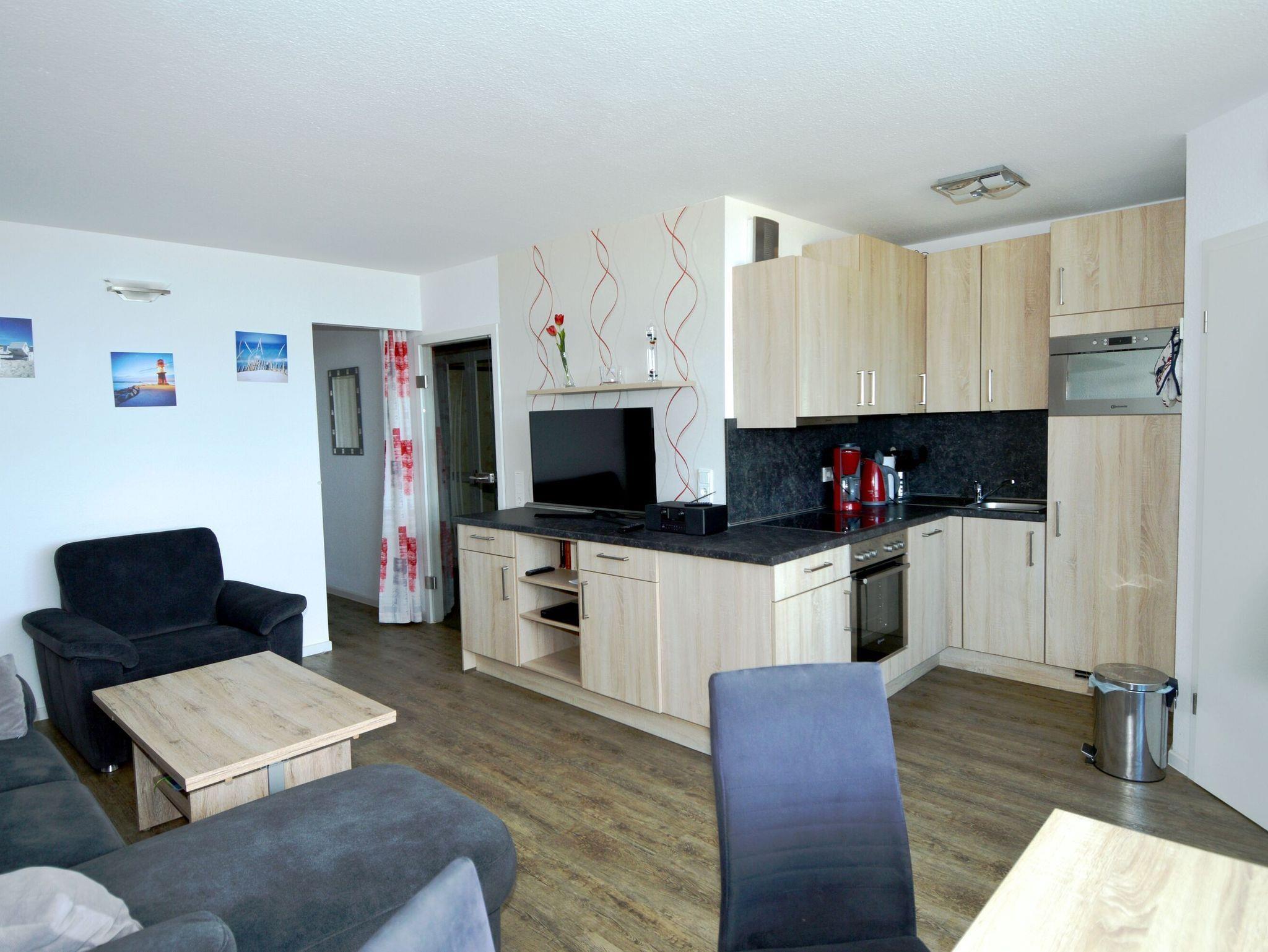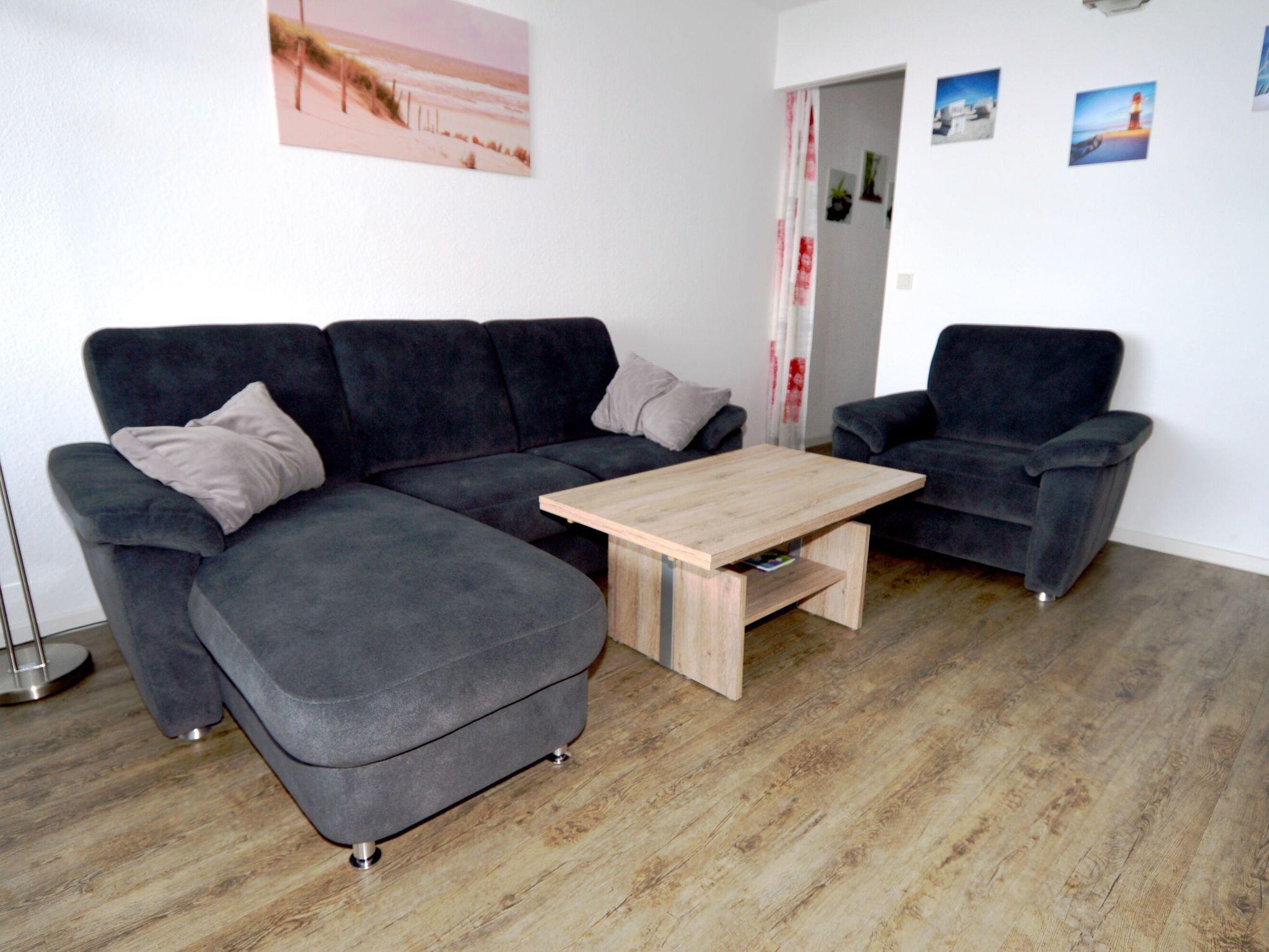 Die helle Einrichtung dieser Ferienwohnung schafft einladende Atmosphäre, in der Sie sich sofort wohlfühlen werden. Die großzügigen Fenster lassen viel Tageslicht herein und bieten Ihnen eine zauberhafte Aussicht. Das Wohnzimmer ist modern gestaltet und läd zum Entspannen nach einem erlebnisreichen Tag ein. Auf der bequemen Couch können Sie die gemeinsamen Abende verbringen, während Sie eine spannende Fernsehsendung oder einen Film genießen.