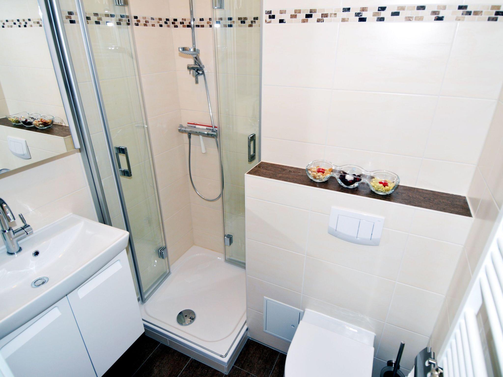 Das Duschbad ist modern gehalten und lädt zum Wohlfühlen ein. Nach einem langen Tag am Strand können Sie hier wunderbar entspannen.