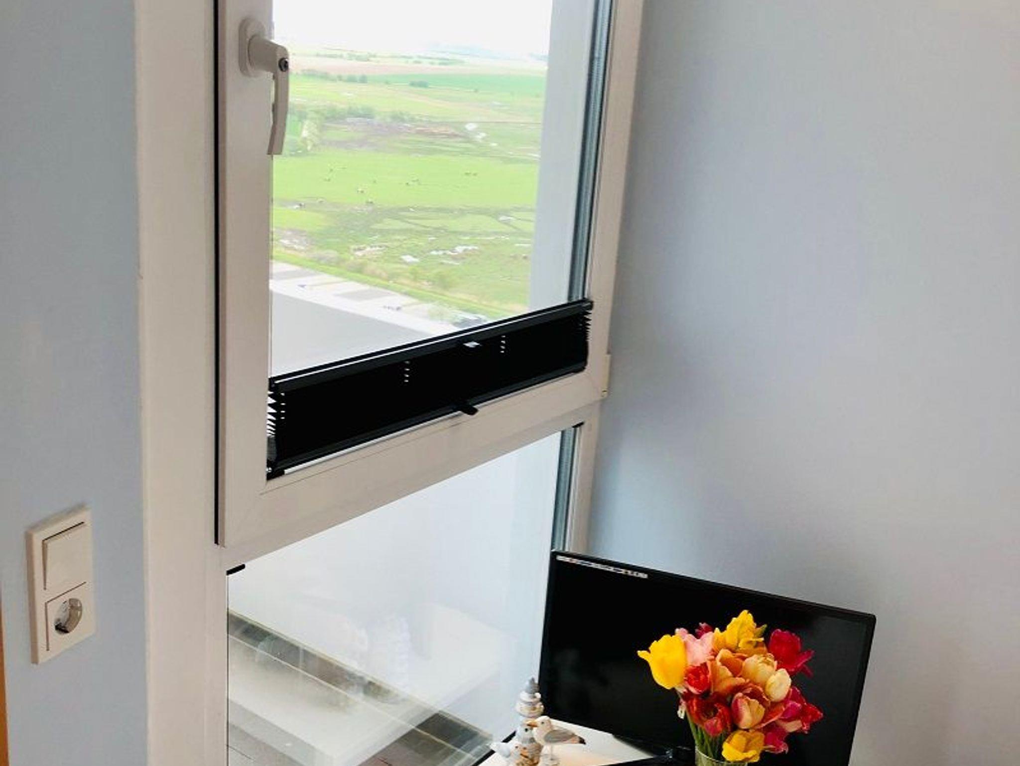 Die frisch renovierte und liebevoll eingerichtete Wohnung liegt im Haus F in der 14. Etage (von 14 Etagen, darüber kommt nur noch der Himmel)