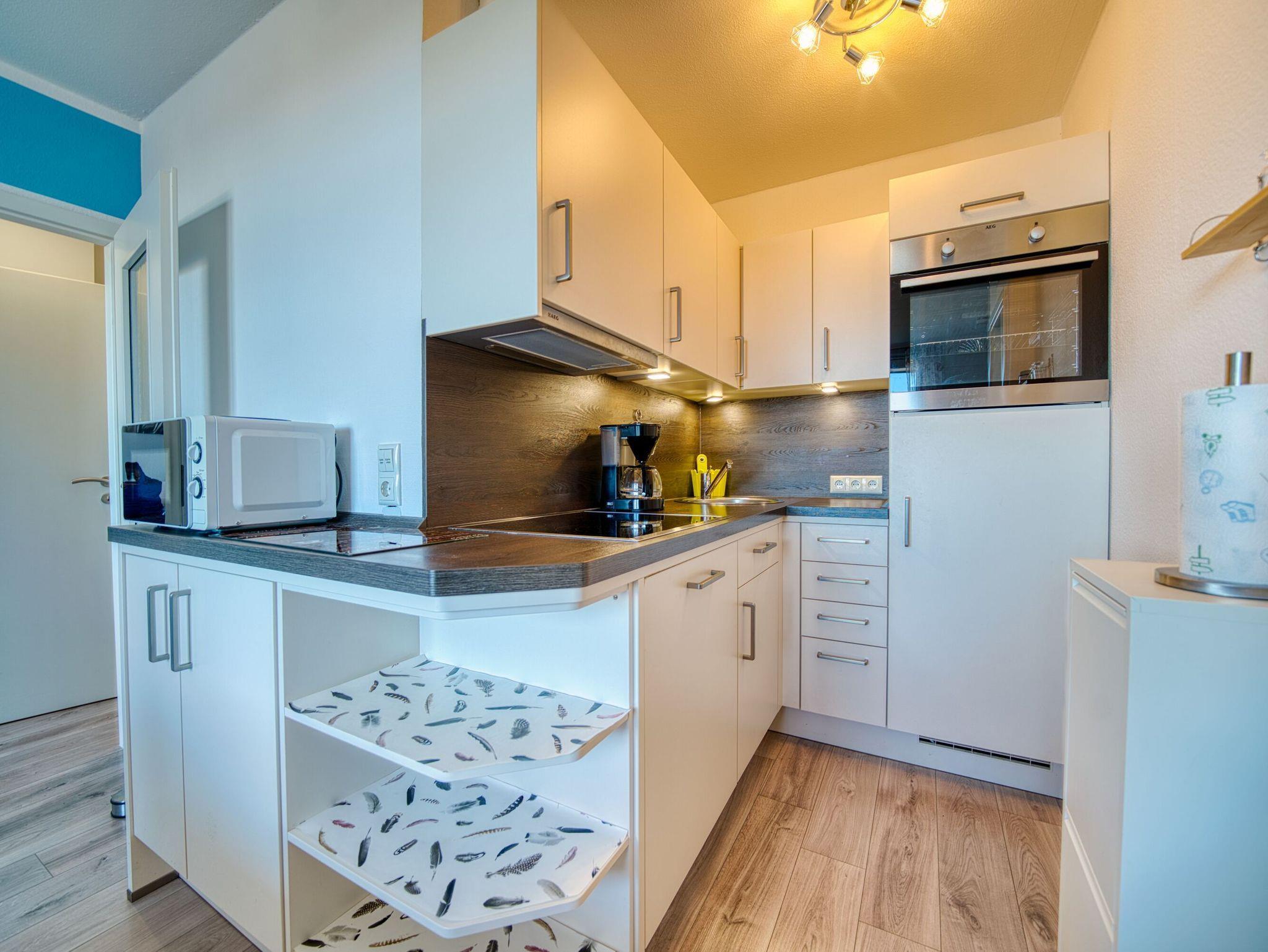 Die Wohnung befindet sich im Haus D, im 3. Stock, mit großem Balkon zur Nord-West-Seite, der einen traumhaften Blick auf die Ostsee, das Naturschutzgebiet und den kleinen Binnensee bietet.