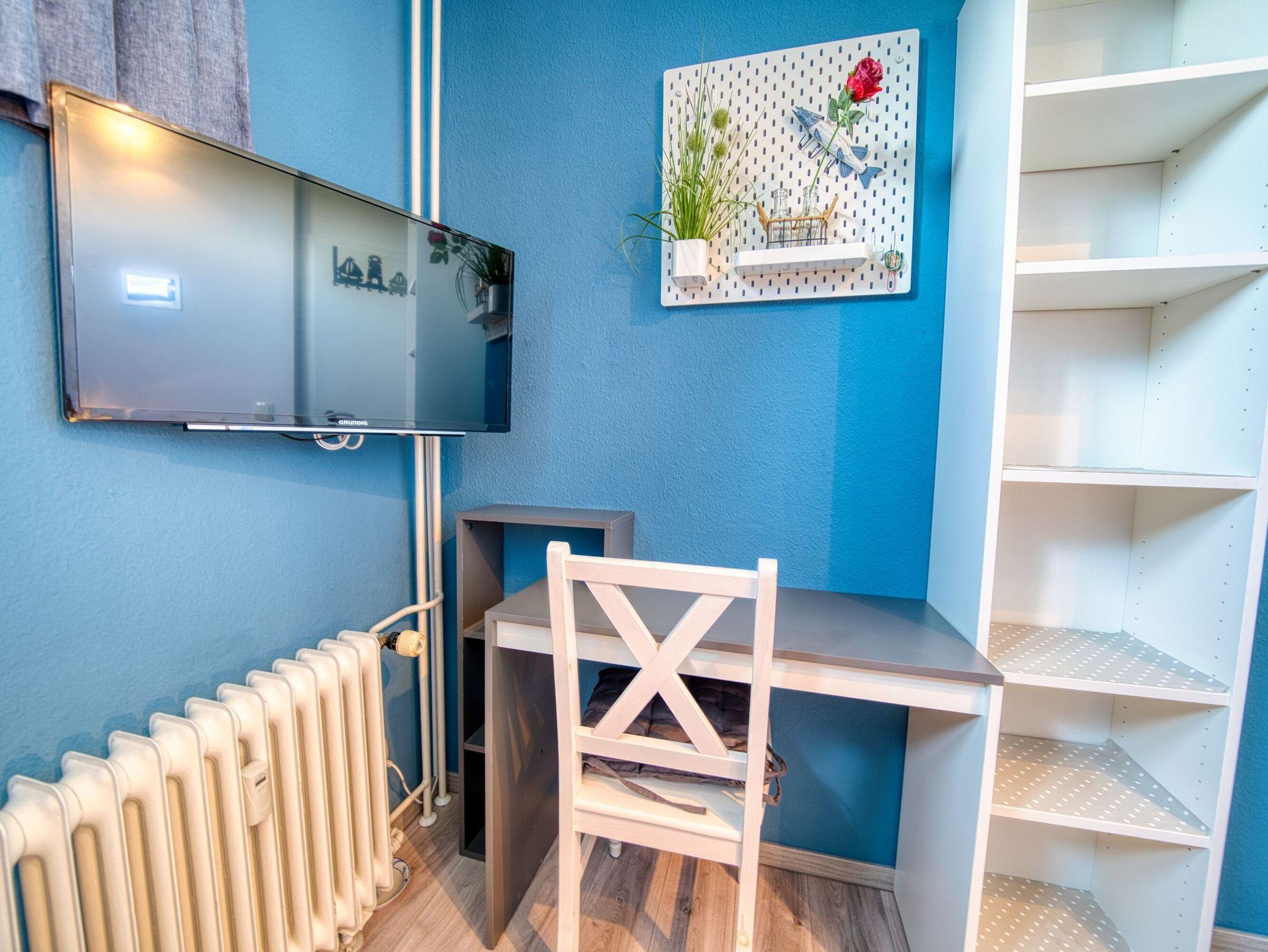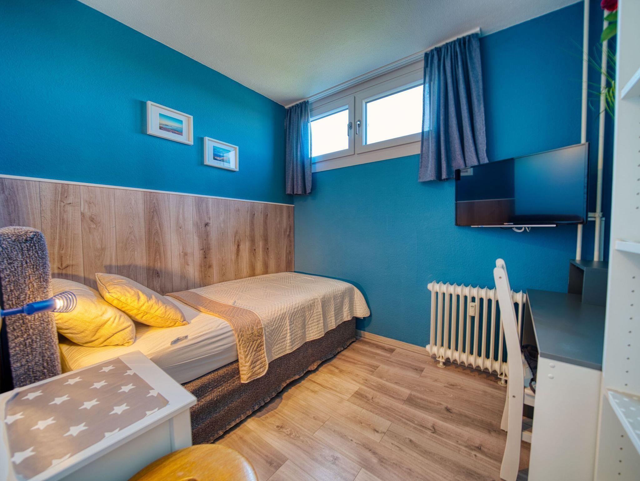 Schlafzimmer 2: Boxspring-Einzelbett (90?x?200?cm), 32-Zoll-Smart-TV, Kippfenster