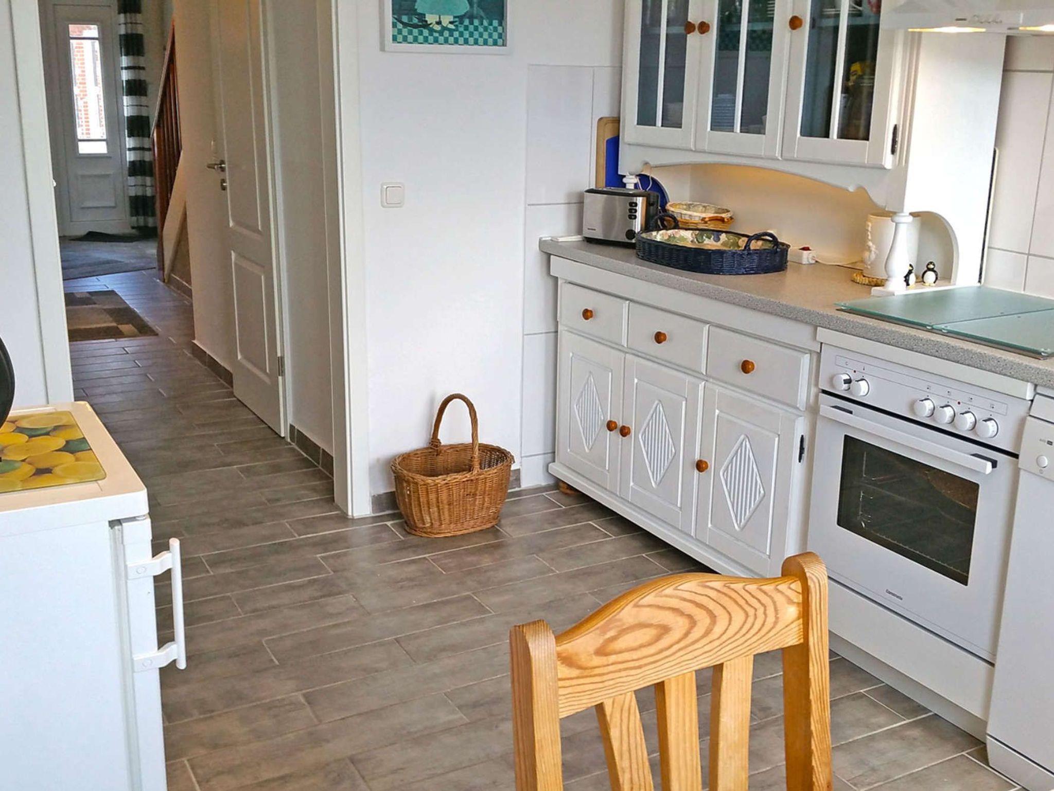 Ein besonderes Highlight ist das große Esszimmer im Erdgeschoss, das reichlich Platz für gemeinsame Mahlzeiten und gesellige Stunden bietet. Direkt angrenzend befindet sich die einladende, voll ausgestattete Küche mit einem modernen Herd mit vier Kochfeldern, einem Geschirrspüler, einer Kaffeemaschine, einem Wasserkocher und vielen weiteren Annehmlichkeiten. Die Küche bietet viel Stauraum und Arbeitsfläche und ermöglicht einen direkten Zugang zum Garten, sodass Mahlzeiten bei schönem Wetter auch unter freiem Himmel genossen werden können.