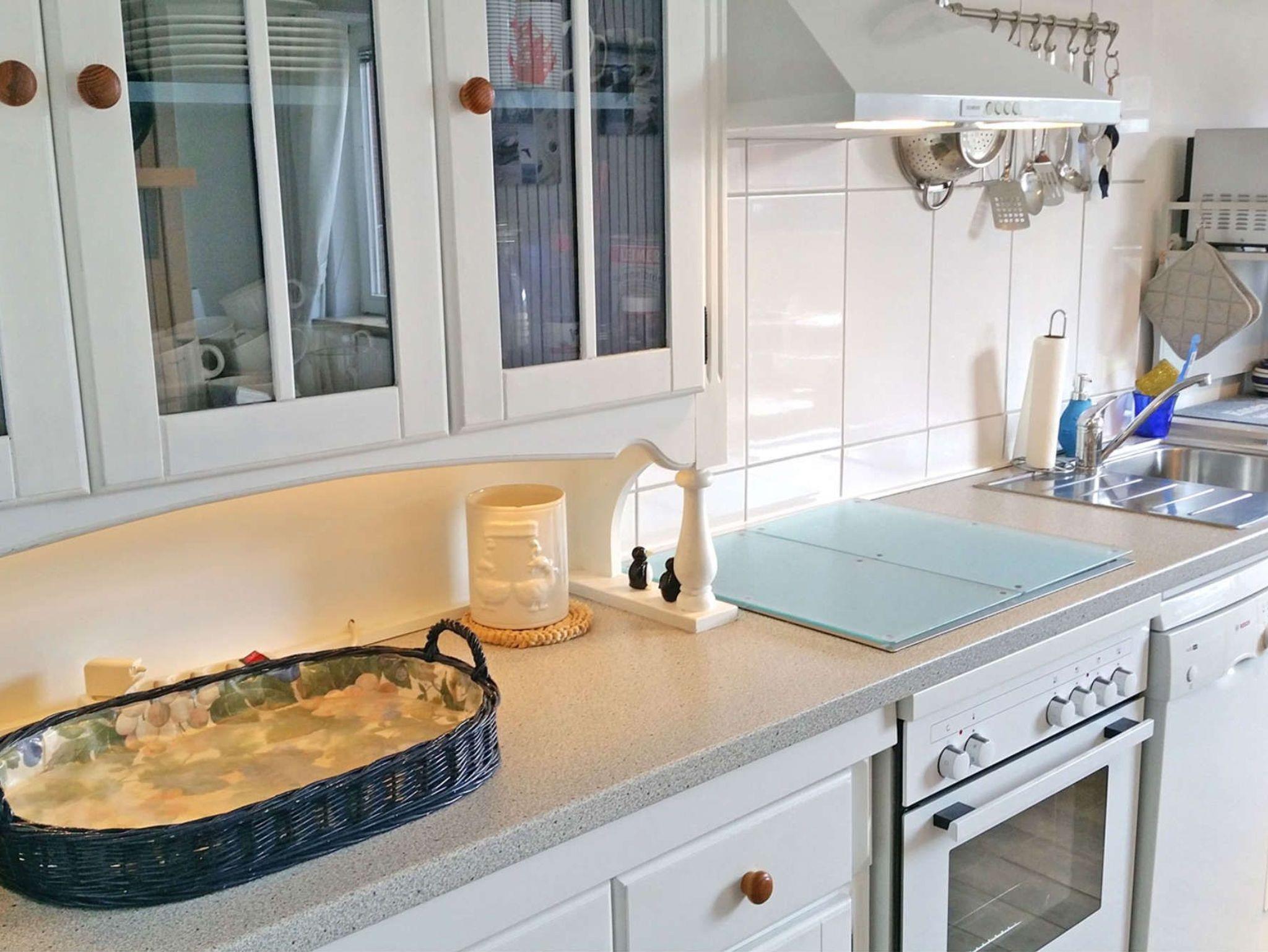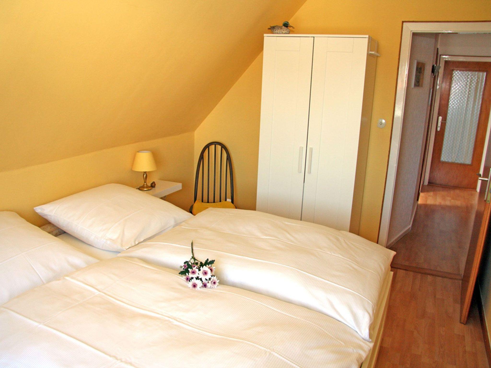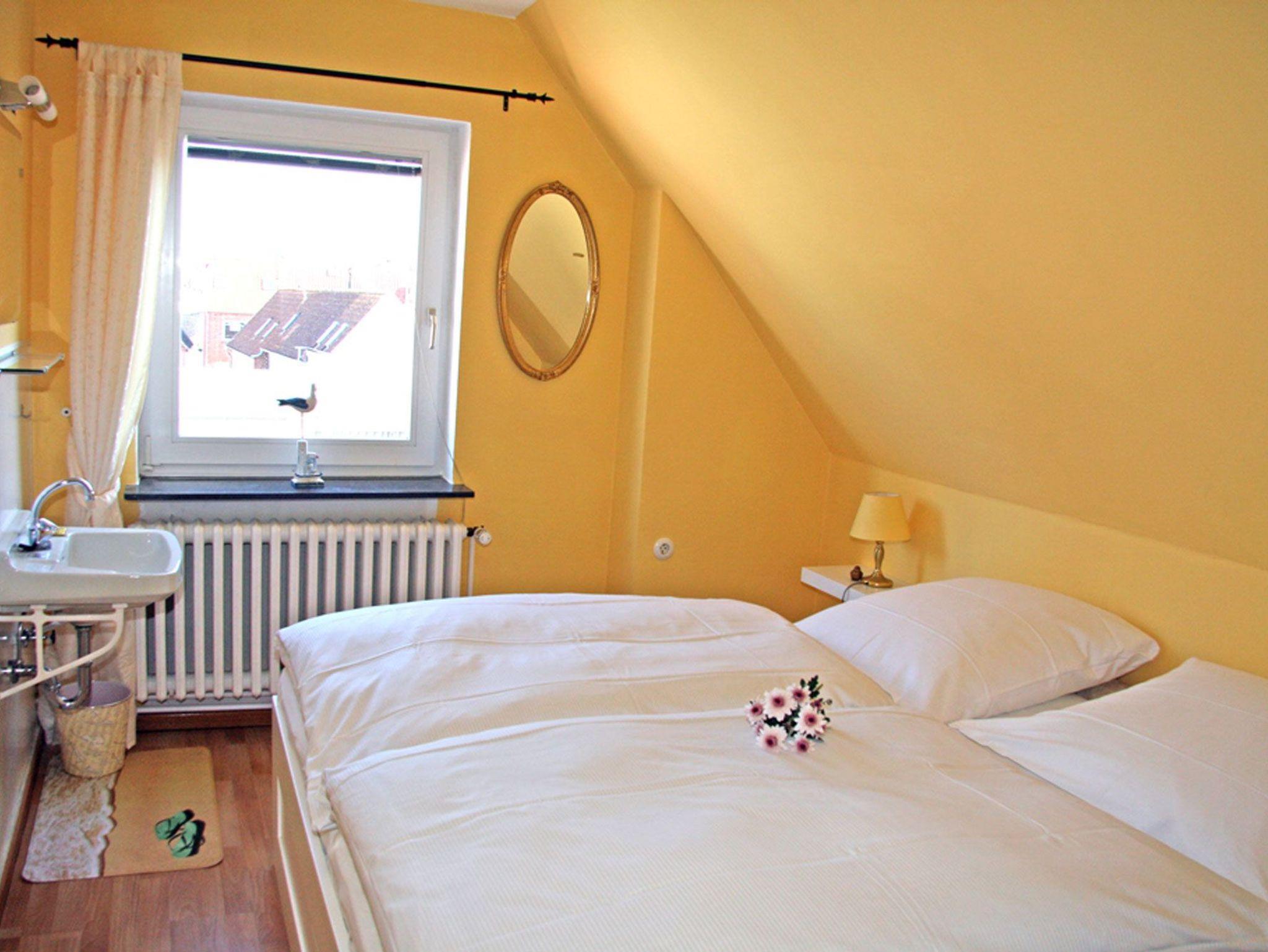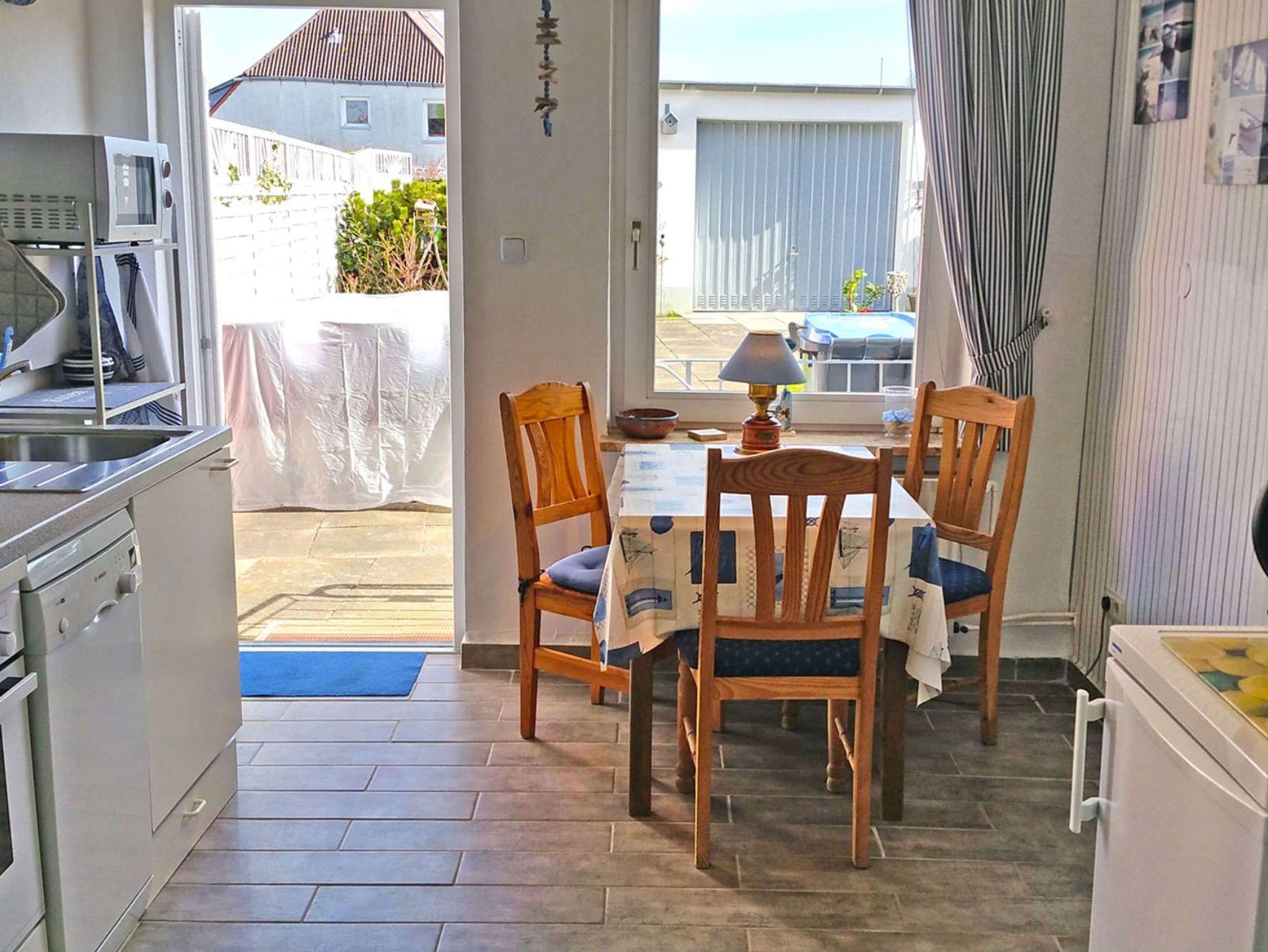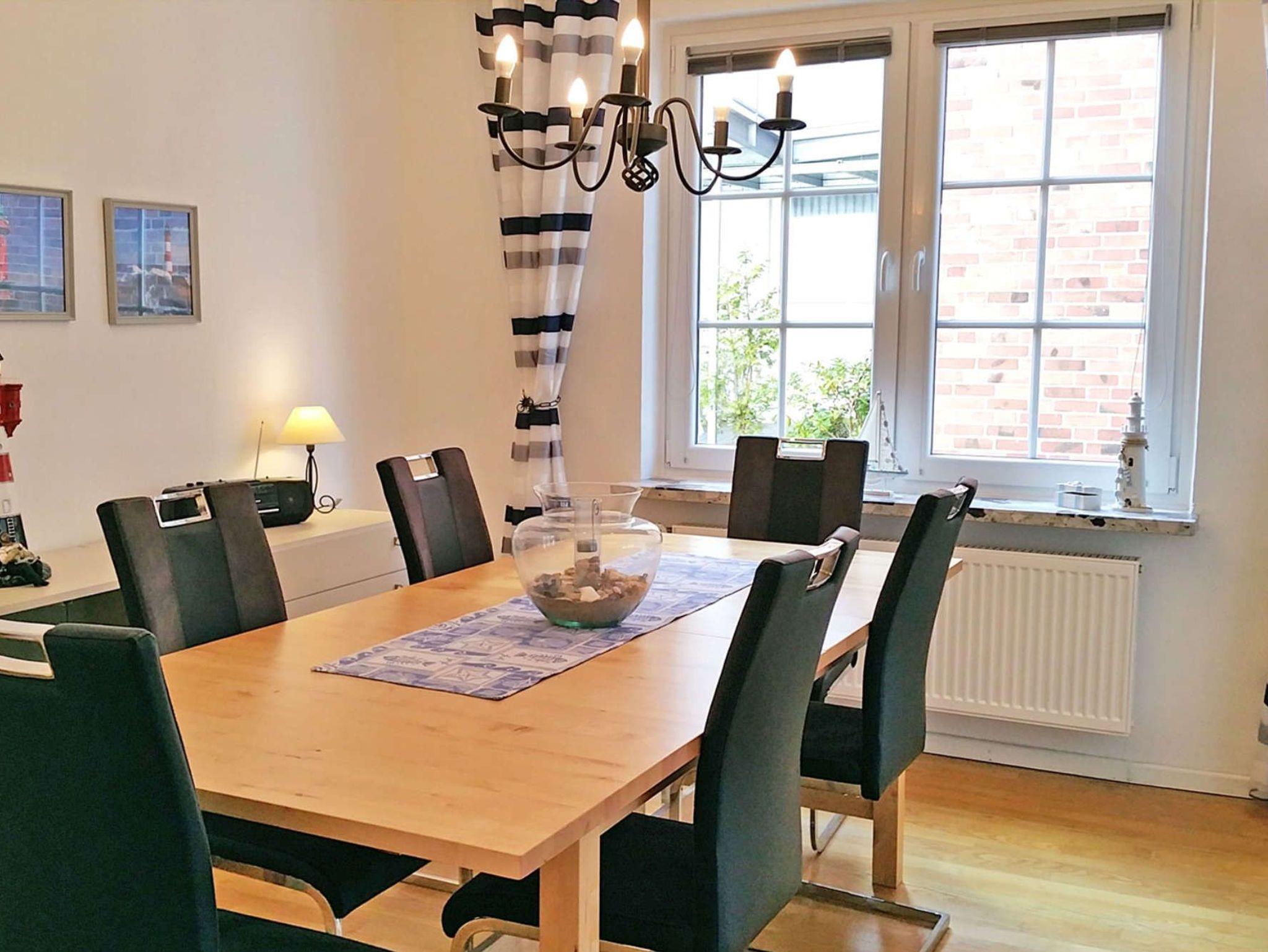 Der einladende Wohnbereich ist mit hochwertigem Parkettboden ausgestattet und liebevoll mit haustypischen Möbeln eingerichtet. Bequeme Sitzgelegenheiten laden zum Verweilen ein, während der moderne LCD-TV und das kostenfreie WLAN für Unterhaltung sorgen. Die große Fensterfront bringt viel Tageslicht in den Raum. Das Kapitäns-Hus verfügt über drei geräumige Schlafzimmer, die sich auf zwei Etagen verteilen. Im Erdgeschoss befindet sich ein gemütliches Schlafzimmer mit Doppelbett, während die beiden weiteren Schlafzimmer im Obergeschoss ebenfalls mit komfortablen Doppelbetten ausgestattet sind. Die hellen, freundlich gestalteten Räume bieten ausreichend Platz und Rückzugsmöglichkeiten für erholsame Nächte.