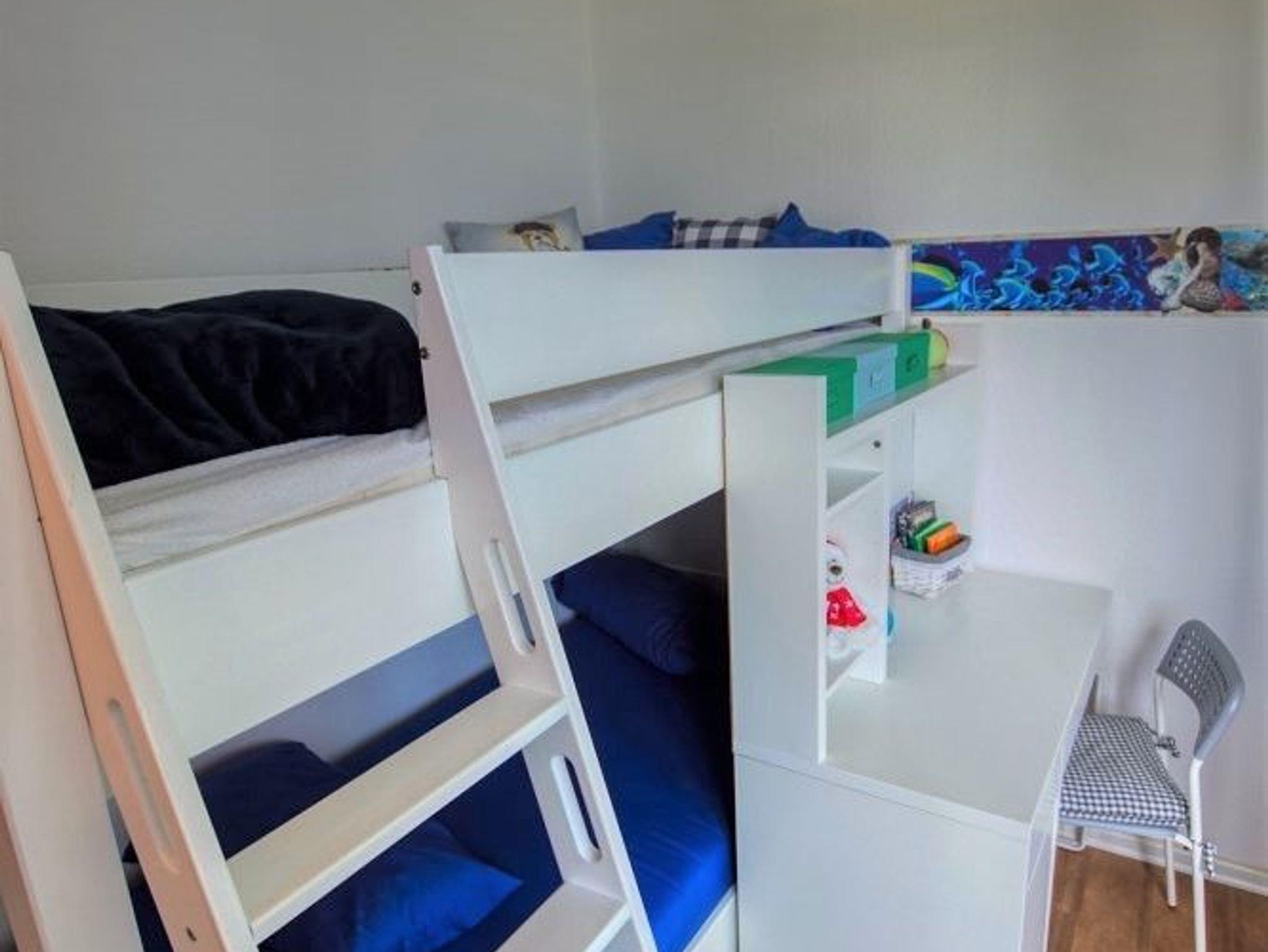 Separates Schlafzimmer mit Etagenbett und Schreibtisch