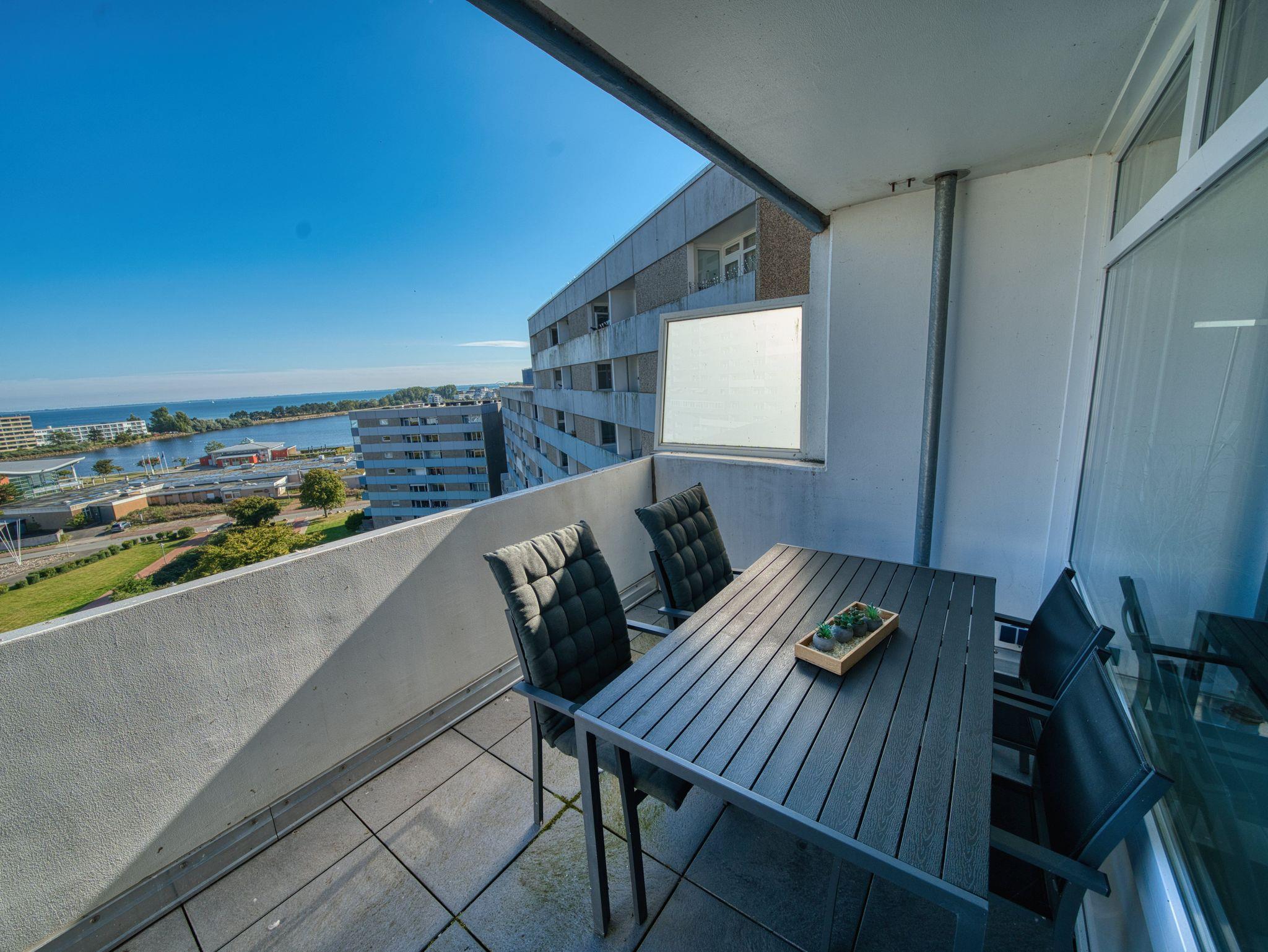 Erleben Sie Ihren Urlaub mit traumhaftem Blick auf die Ostsee in dieser gepflegten Ferienwohnung im Ferienpark Heiligenhafen, Haus L, 8. Etage. Die 45?m² große Wohnung bietet Platz für bis zu 4 Personen und vereint Funktionalität, Gemütlichkeit und eine tolle Lage ? ideal für Paare oder Familien.