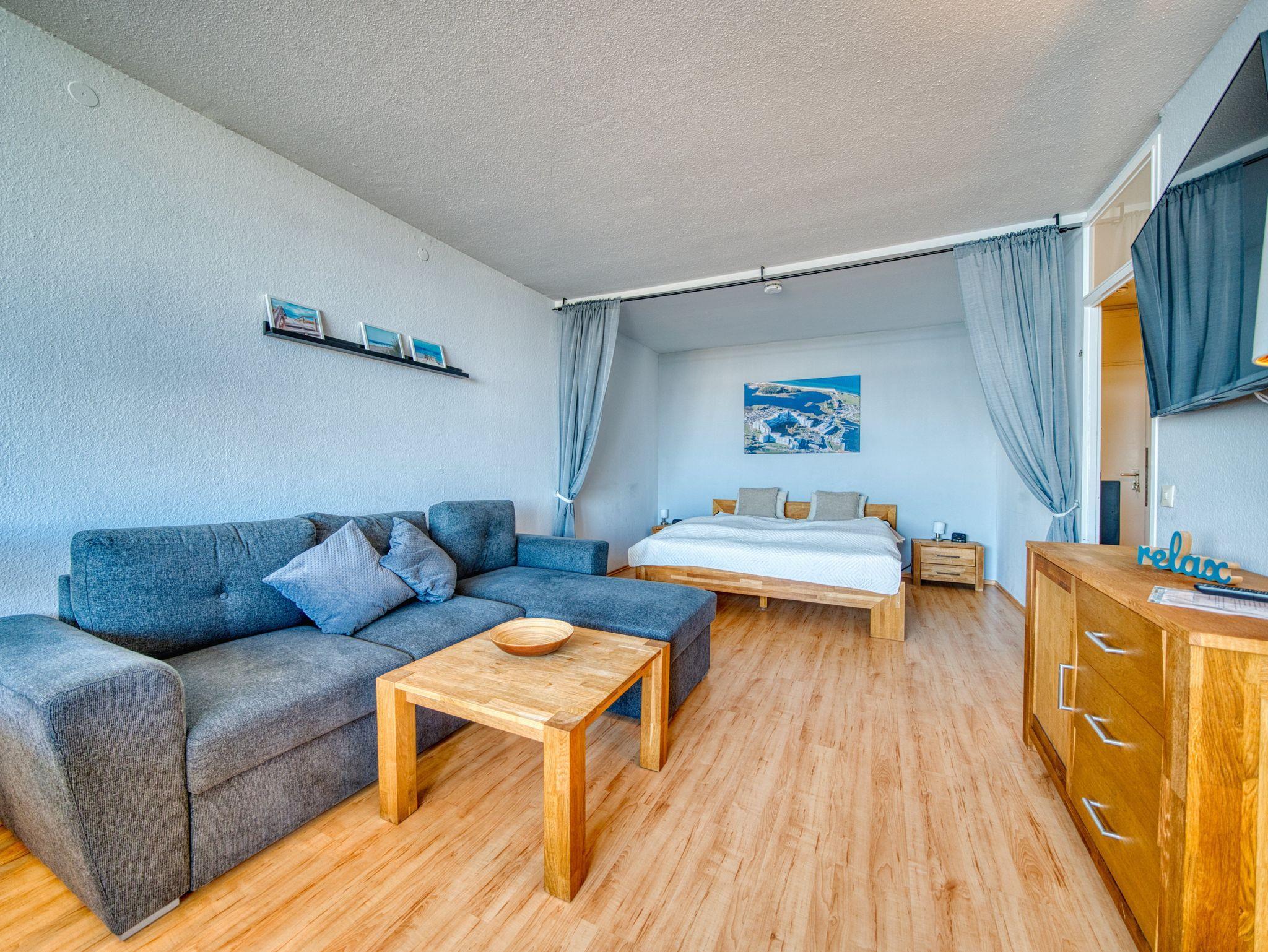 Genießen Sie Ihren Urlaub in dieser hellen Ferienwohnung mit Meerblick im Ferienpark Heiligenhafen, nur 300 m vom Strand entfernt.