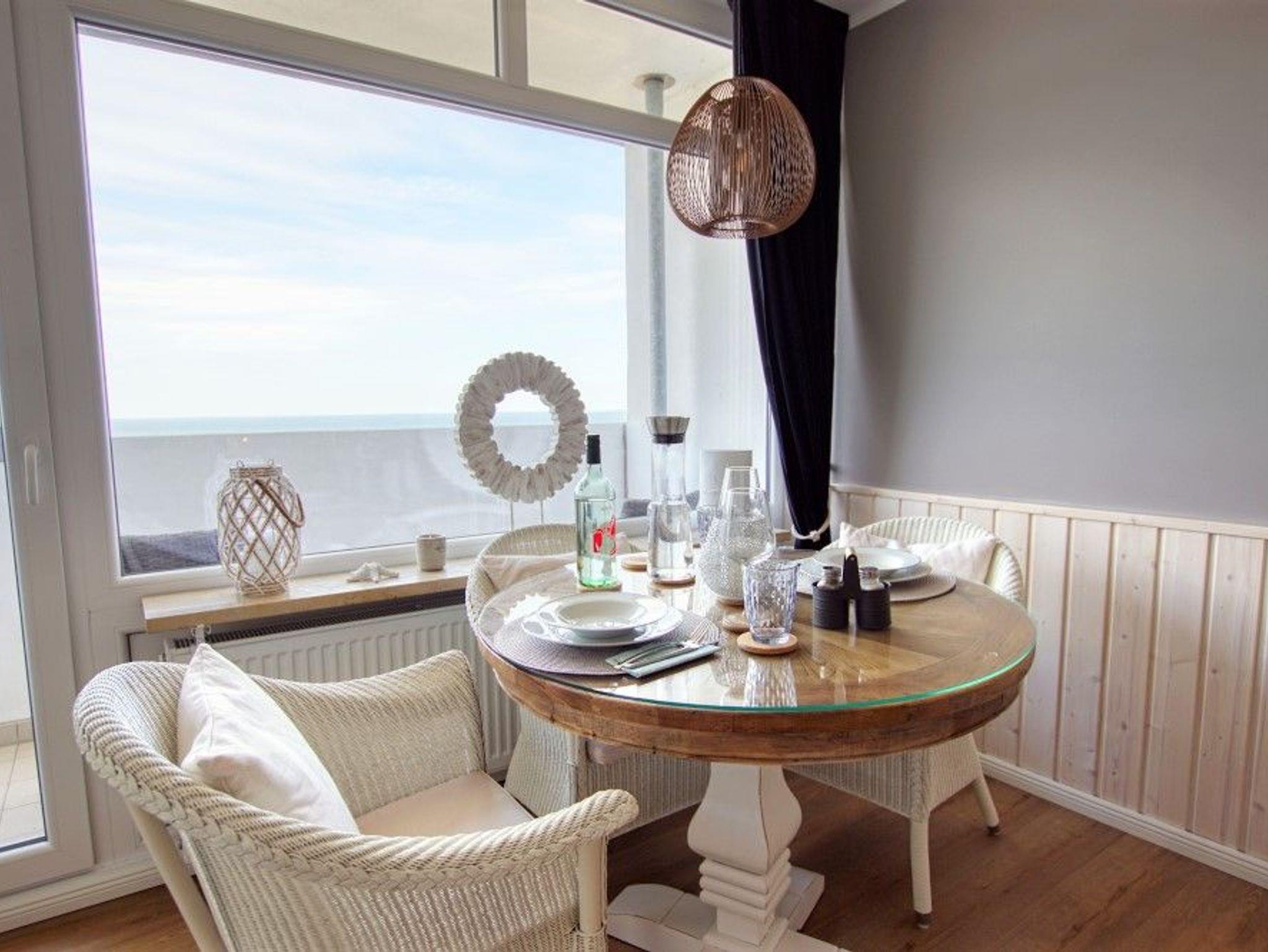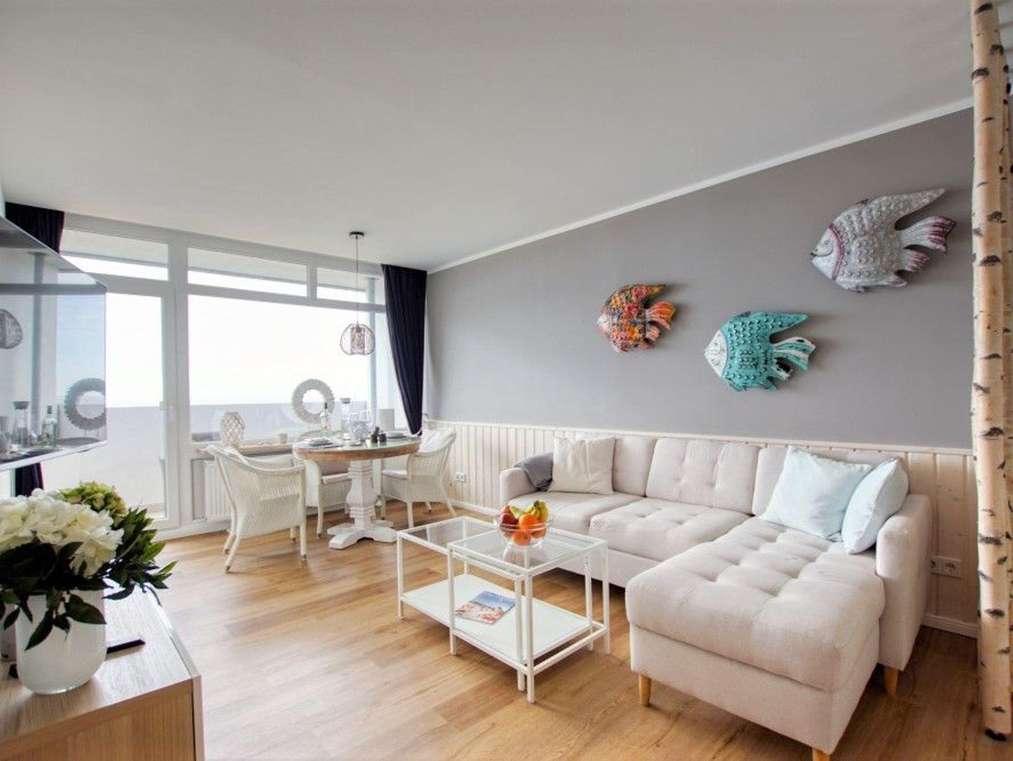 Treten Sie ein und spüren Sie sofort: Diese Wohnung ist etwas ganz Besonderes. Hoch über dem Meer, im 10. Obergeschoss des Hauses C, erwartet Sie eine stilvolle Design-Ferienwohnung mit privater Sauna, hochwertigen Materialien und einem atemberaubenden Blick auf die Ostsee ? so weit das Auge reicht.