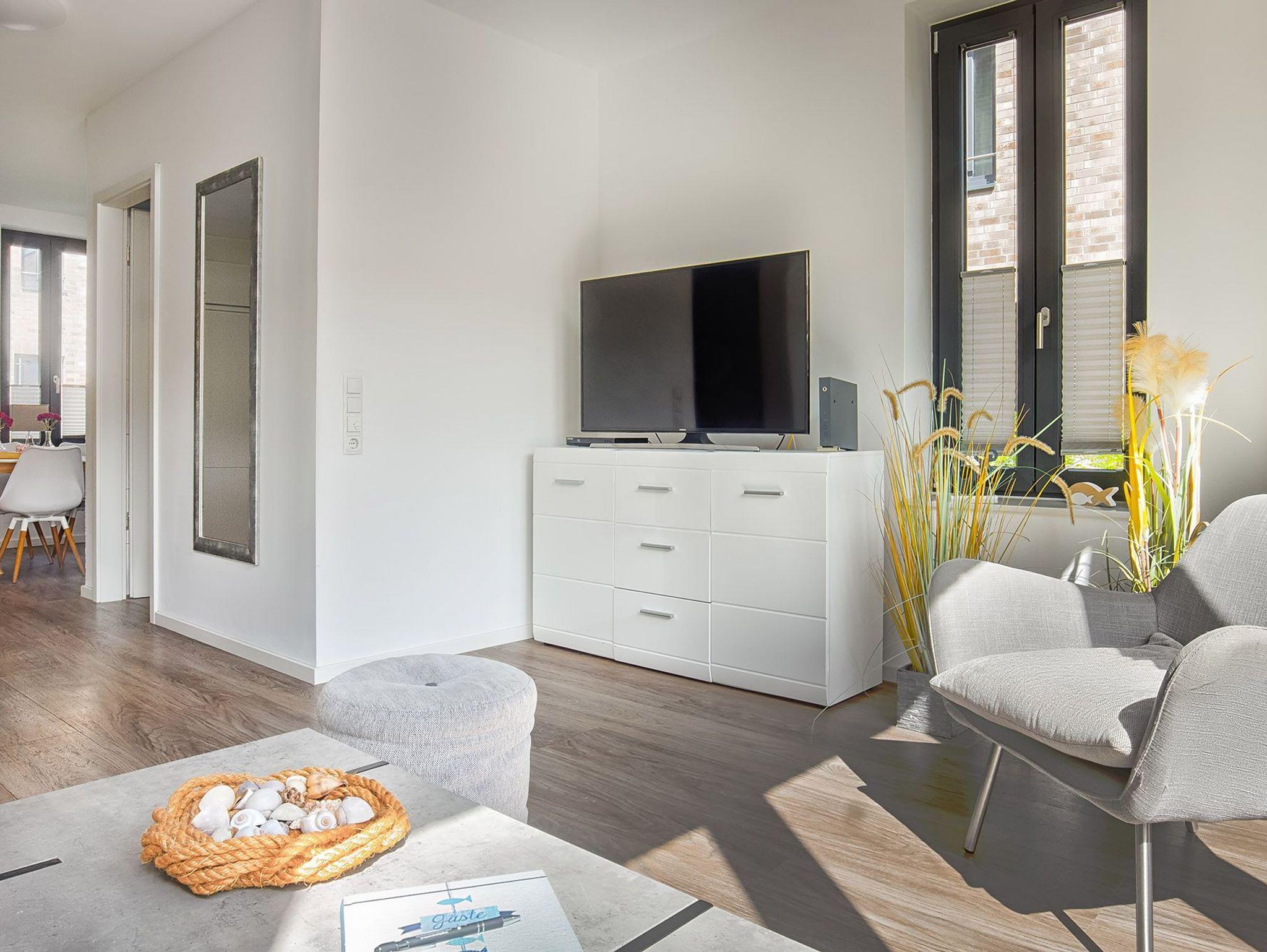 WLAN ist im gesamten Haus verfügbar. Ein Parkplatz in der Tiefgarage des Fischerdorfes steht Ihnen kostenfrei zur Verfügung (maximale Fahrzeughöhe: 2 Meter). Für weitere Fahrzeuge können Sie die öffentlichen Parkflächen in der Umgebung nutzen. Ihre Fahrräder oder E-Bikes können sicher im abschließbaren Fahrradkeller neben der Tiefgarage abgestellt werden.