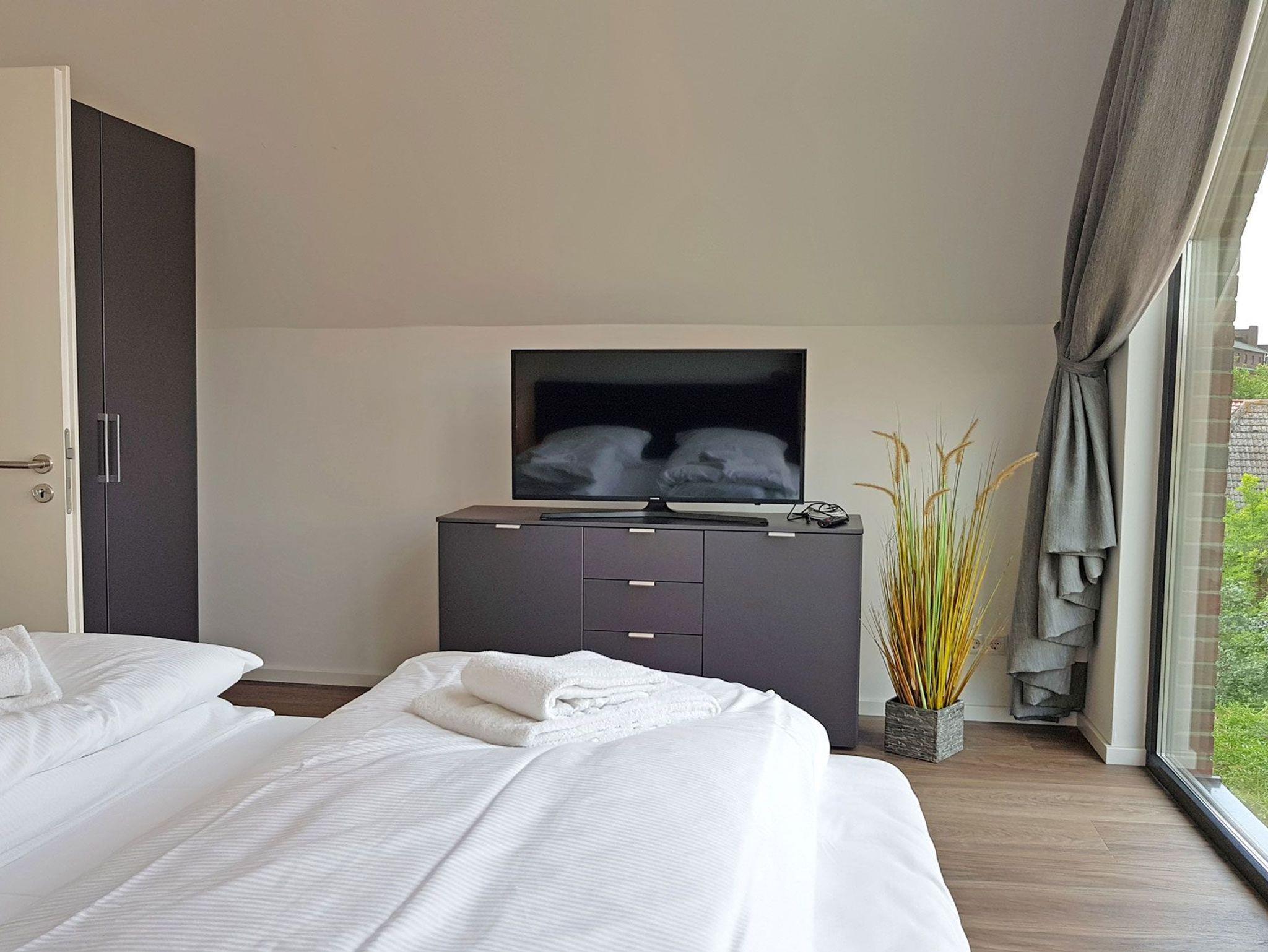 Das Haus ist ideal für Familien und Kleingruppen, da es über vier separate Schlafzimmer verfügt. Zwei Zimmer sind mit komfortablen Doppelbetten ausgestattet, eines mit zwei Einzelbetten und ein weiteres mit einem Einzelbett. Auch Ihr vierbeiniger Freund darf hier übernachten ? allerdings nicht in den Betten! Falls Sie mit Kleinkindern reisen, können Baby-Reisebetten gegen Gebühr bereitgestellt werden. Große Fensterfronten sorgen in allen Räumen für viel Tageslicht, während Vorhänge und Plissees für Verdunklung und erholsamen Schlaf sorgen. Ein besonderes Highlight ist das große Schlafzimmer im Dachgeschoss, von dem aus Sie sogar Ostseeblick haben.
