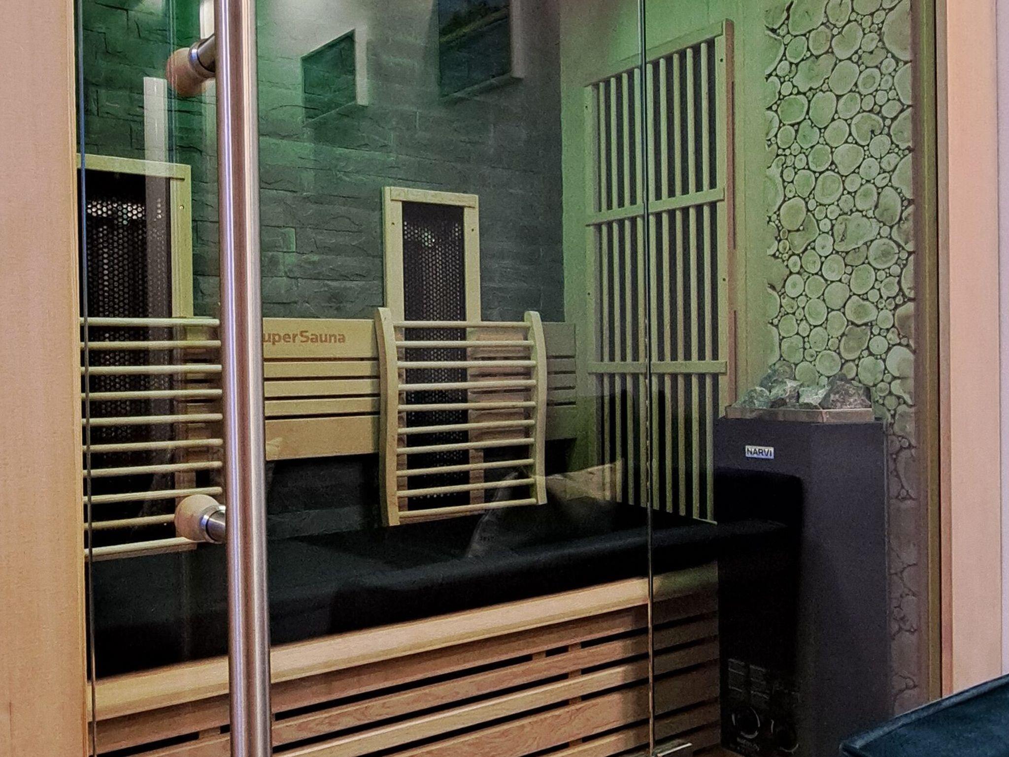 Ein besonderes Highlight ist die wohnungseigene Infrarot-/Kombisauna. (Die therapeutische Infrarotkabine mit finnischer Sauna kombiniert, bietet zusätzliche Erholung und Wohlfühlmomente).