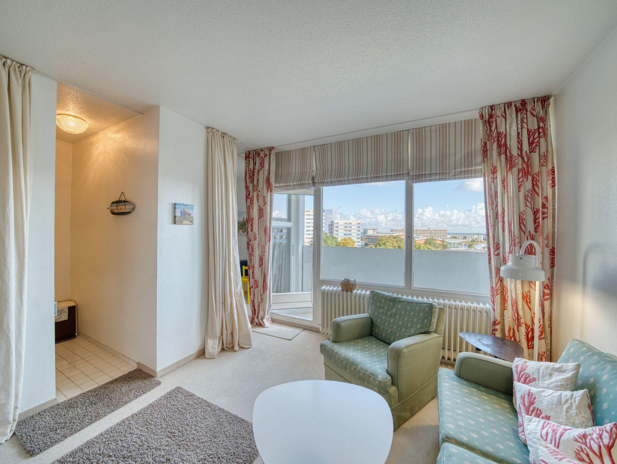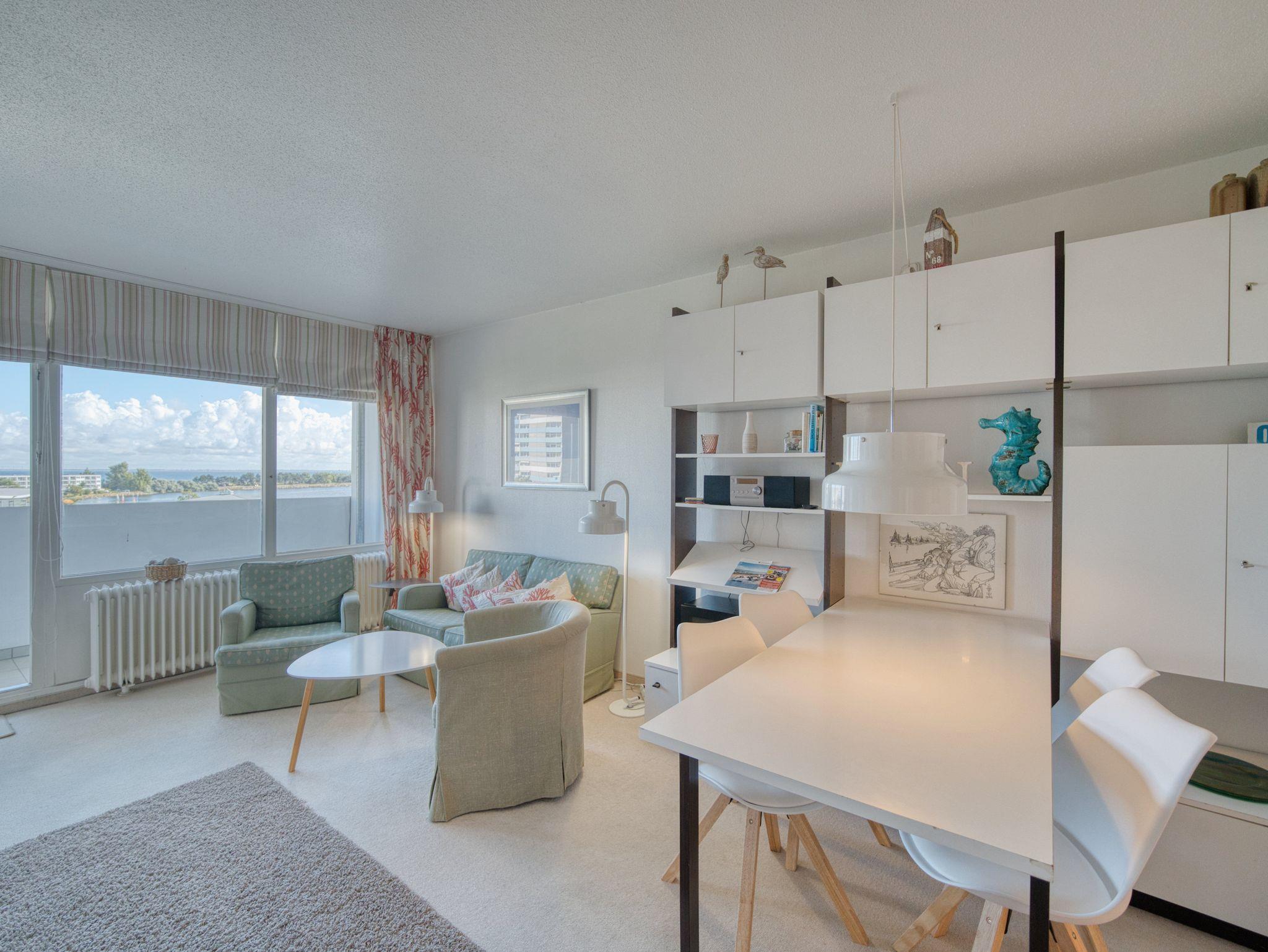 Die Wohnung liegt im Haus L Ferienpark, in der 5. Etage, mit Balkon zum Innenhof, der einen schönen Blick auf den Binnensee bietet.