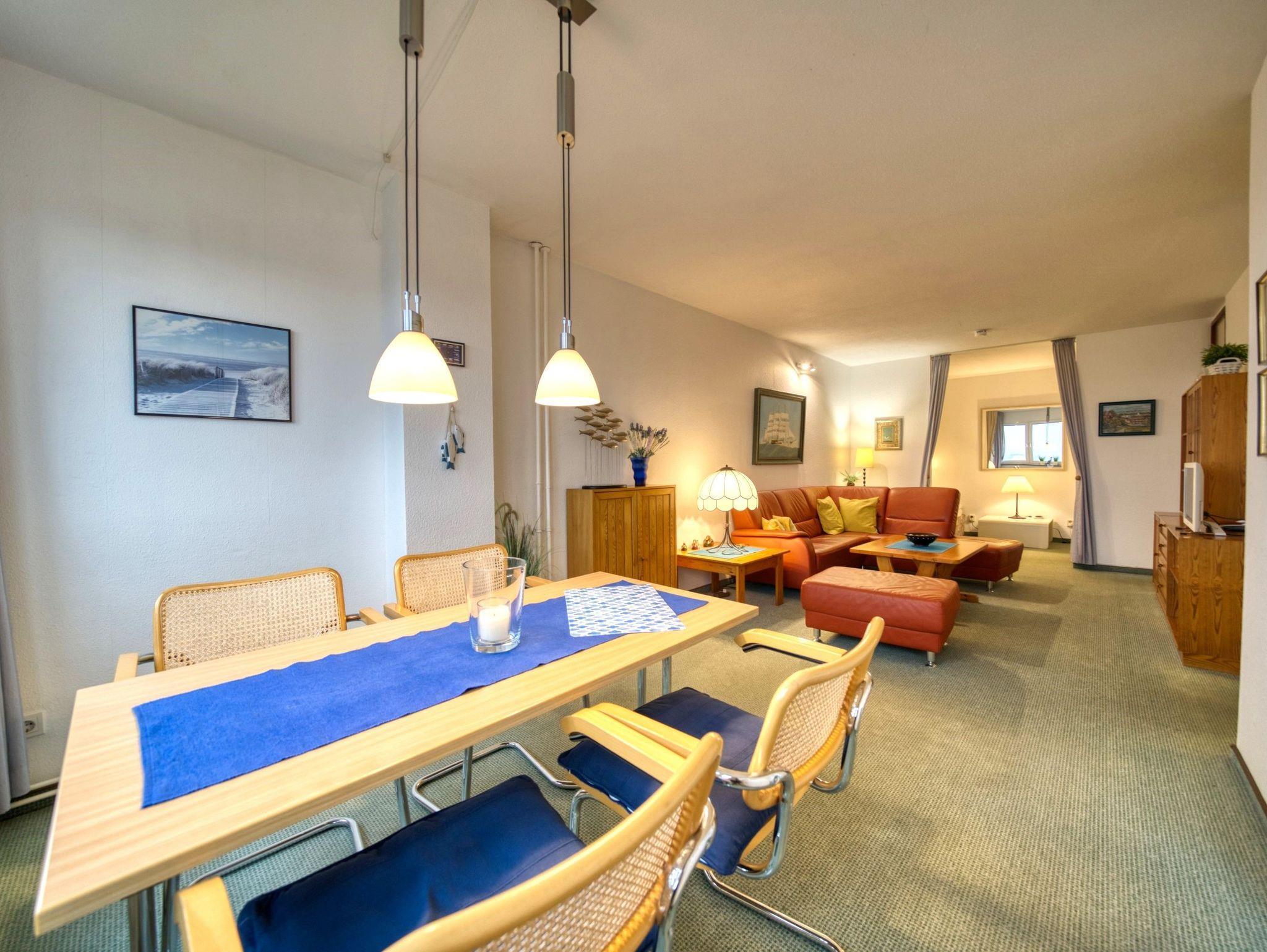 Wohn-/Esszimmer mit gemütlichem Sitzbereich und Flachbild-TV