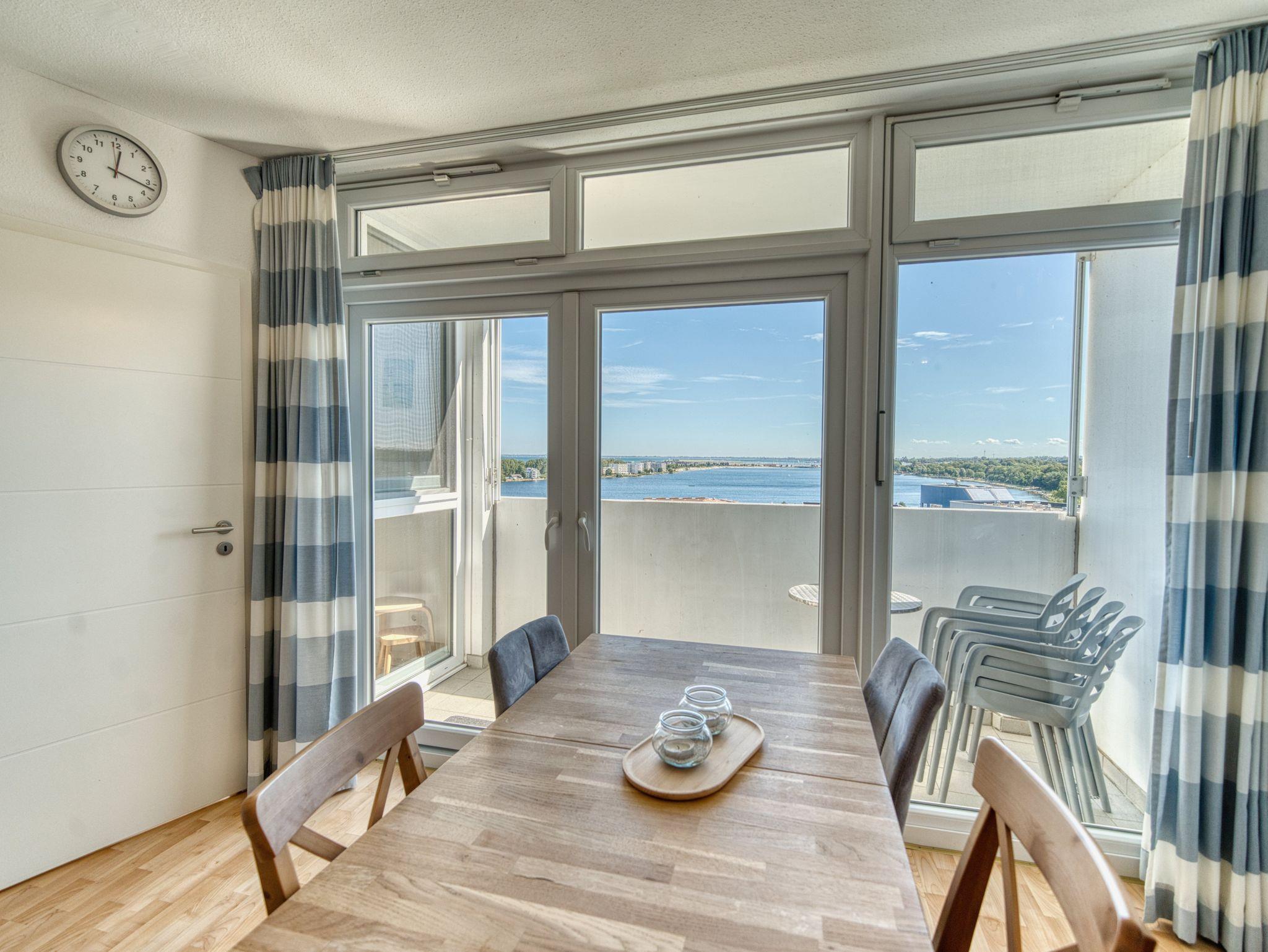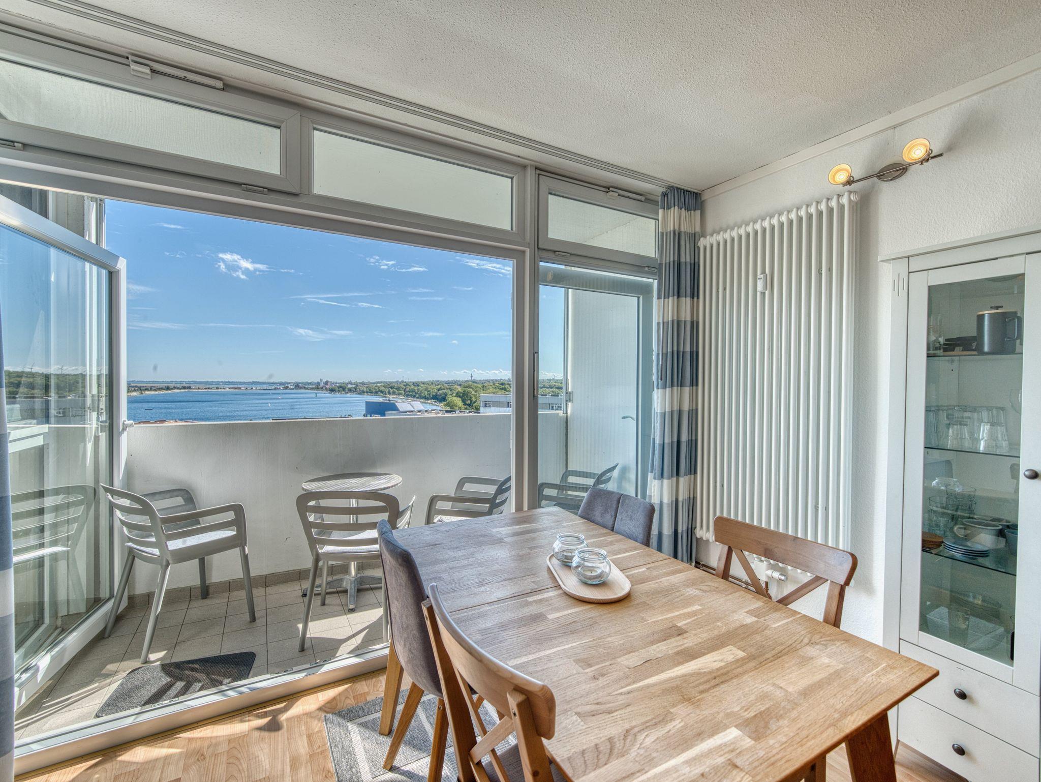 Diese modern eingerichtete Wohnung liegt im Haus H Ferienpark, in der 11. Etage, mit Balkon zur Ostseite, der einen herrlichen Blick auf die Ostsee mit Fehmarnsundbrücke sowie den Binnensee mit Stadt und Yachthafen bietet.