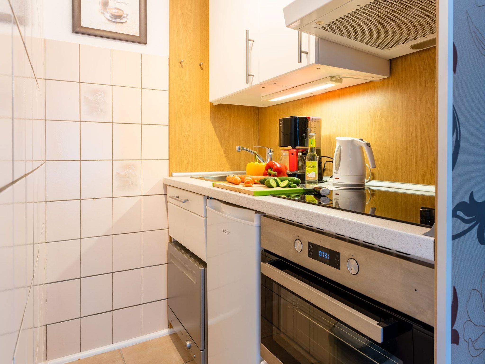 Voll ausgestattete Küche mit Kühlschrank (3* Gefrierfach), Backofen, Geschirrspüler, Mikrowelle, Kaffeemaschine und 3-Platten-Herd