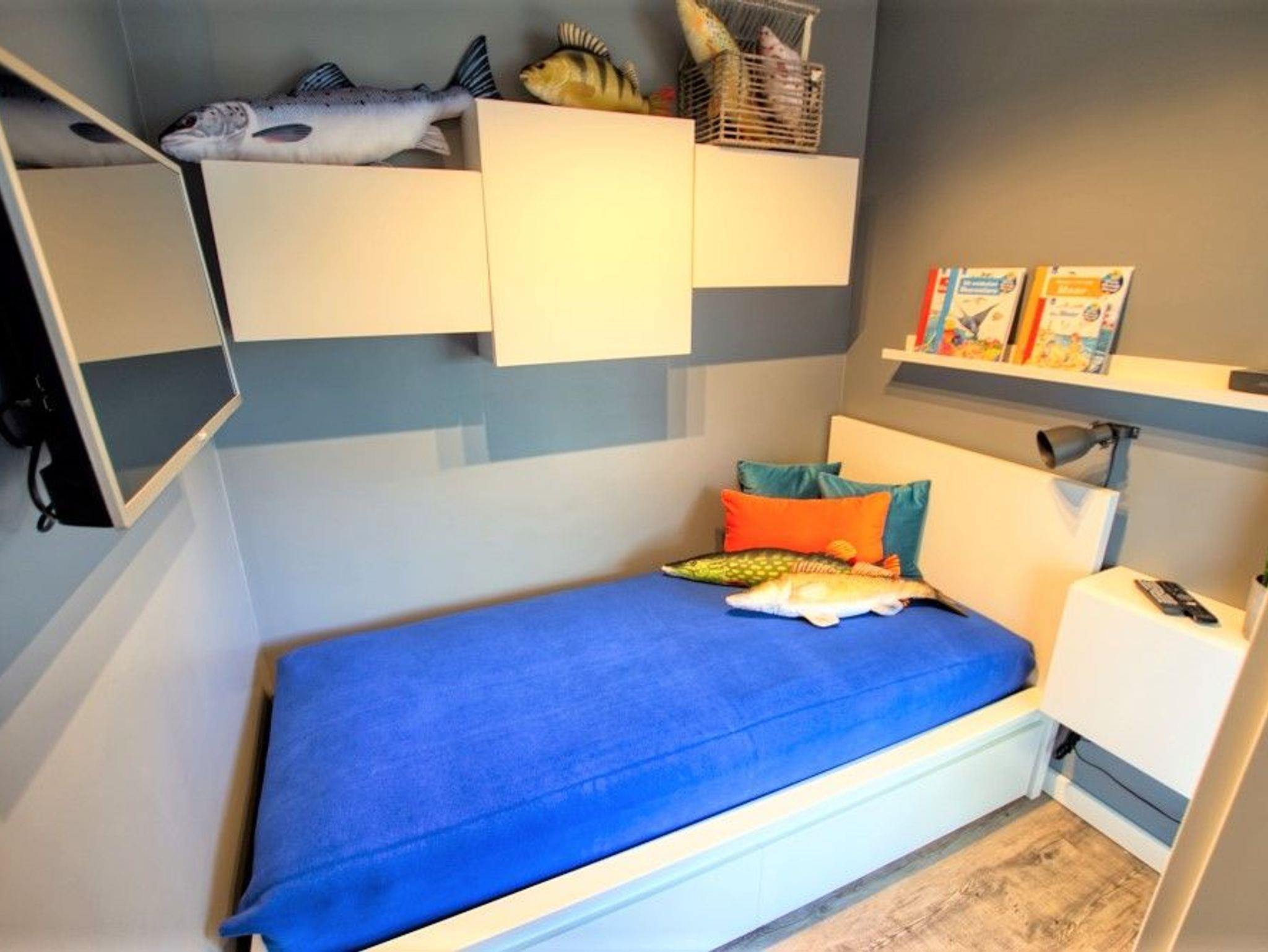 Zweites Schlafzimmer mit Einzelbett und ebenfalls TV