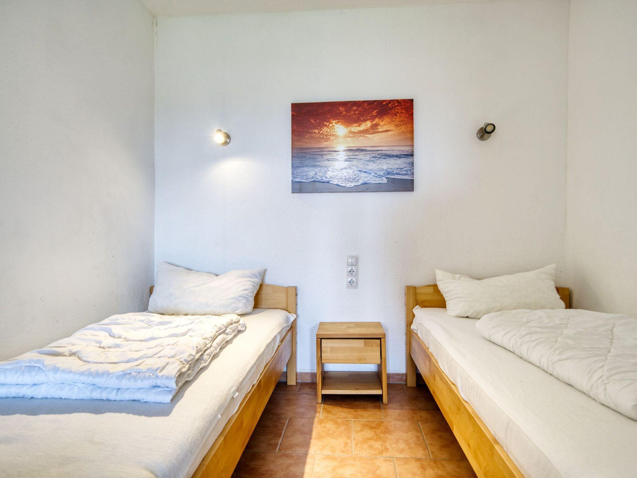 Die Wohnung verfügt über eine Wohnfläche von 45 qm mit folgender Aufteilung: Wohn-Esszimmer, Elternschlafraum mit Einzelbetten, sep. Kinderzimmer mit Etagenbett, komplett eingerichtete Küche inkl. Mikrowelle mit Grillfunktion, Kühlschrank mit Gefrierfach, 2-Plattenherd, Bad mit WC und Duschkabine, Flachbildfernseher, DVD-Spieler und Radio im Wohnzimmer.