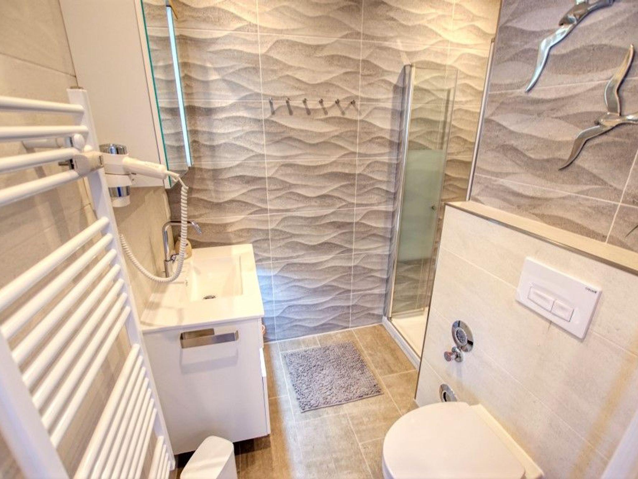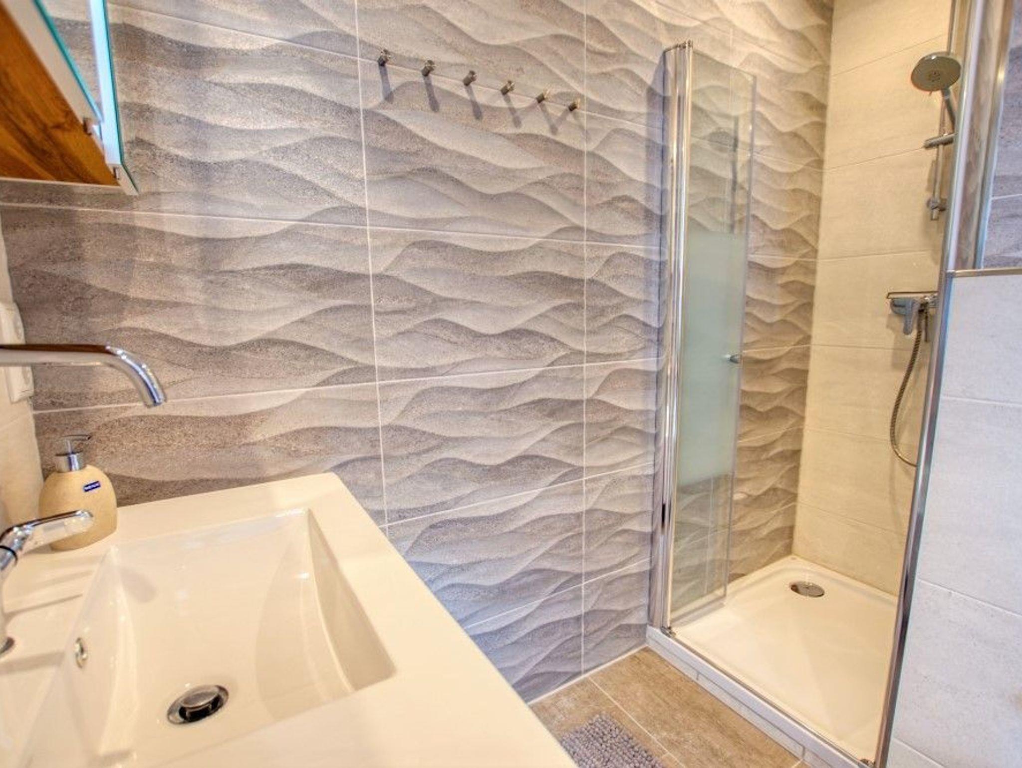 Bad mit moderner Ausstattung und großzügiger, begehbarer Dusche